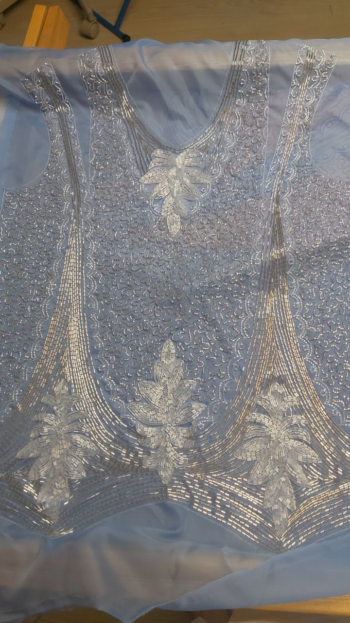 Назим Мустафаев дал добро на повтор. Показали модель, я отшила 2 образца, перенесла на лекала рисунок и теперь вышиваю. Понимая как, не делаю лишних движений.