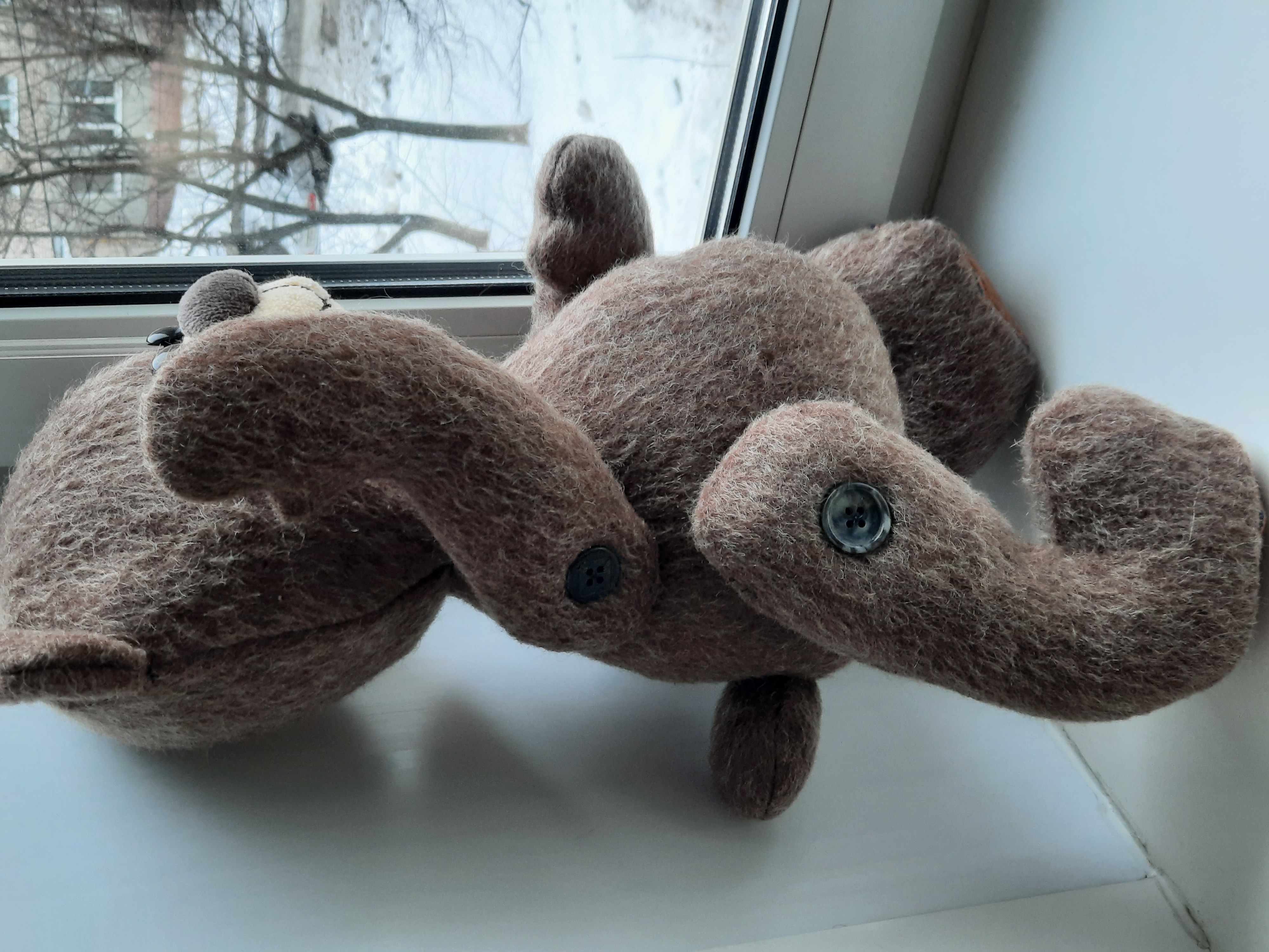 В детстве лет 60 назад был у меня любимый плюшевый медведь,набитый опилками.Я его как -то напоила водой,пришлось сушить на веревке на солнышке,от мамы влетело....При переезде из Байконура в Москву мишку с собой не взяли( наверное старым посчитали).После этого мне еще медведей дарили,но тот первый,друг детства до сих пор в памяти и перед глазами,чувство предательства с годами увеличивается...