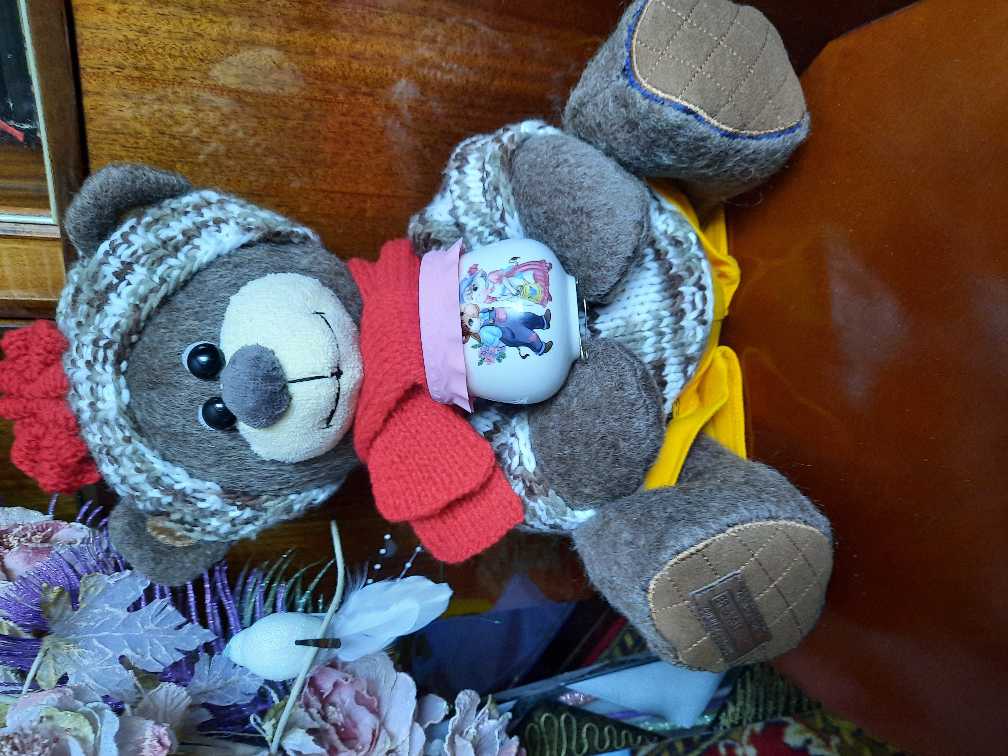 Ой!!! Какой чудесный мишутка!!! Прелесть.У меня в детстве тоже был из опилок.почти как Ваш росточкомЯ своего почти сберегла, а вот лет 20 назад украли. Много чего я потеряла, но не могу забыть только потерю мишки.Я тоже предпочитаю такие игрушки «голенькими».они тогда как настоящие.А может это потому, что в детстве они все были без одежки, А одетые… это уже не НАШИ мишки!!! Но новые времена.другие нравы. Так что в одежде он красавец!!!