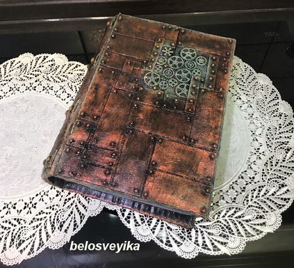 Посмотрела все комментарии.Хочу добавить: шкатулки-книжки в стиле СТИМПАНК мы всегда стараемся делать «пожившие», поэтому можно использовать свою фантазию, т.е.эти пластинки на обложке можно и наложить друг на друга и добавить ещё какого нибудь «мусора»-цепочки, шурупы, пуговицы.....