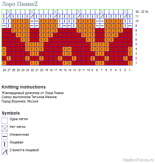Первая полоса жаккарда начинается после сборки туловища и рукавов одним рядом из изнаночных петель, затем ряд из лицевых (это позволит нам выйти на нужно количество петель согласно следующим узорам), далее сам узор. Раппорт узора 7 петель. Высота 7 рядов, в 8-м ряду идут первые убавки через 8 петель. Схема 1