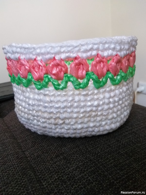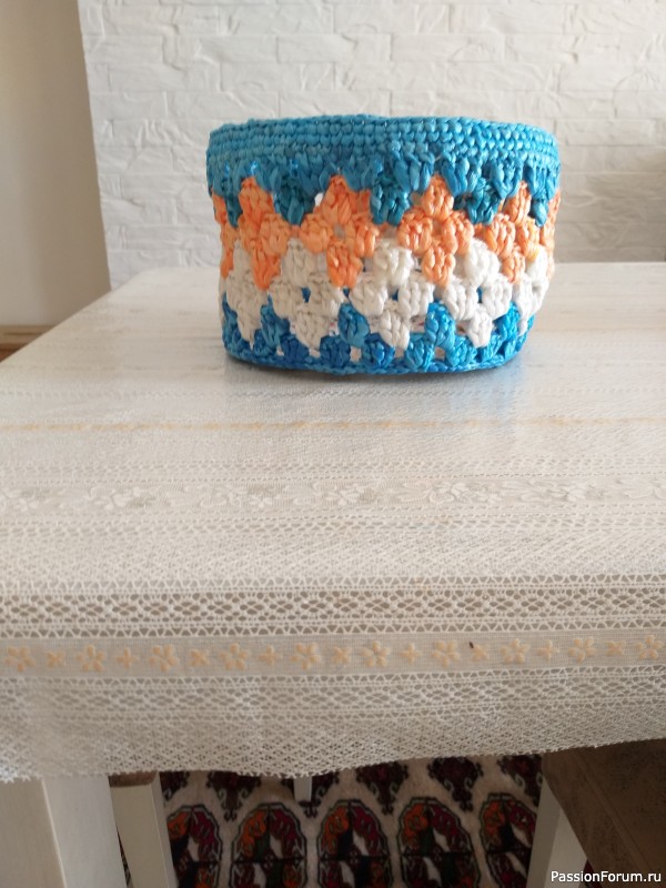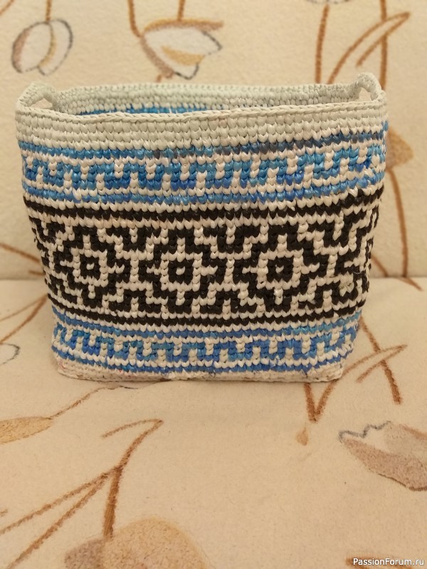 а это из пакетов вязали? А на первой корзинке национальный узор?