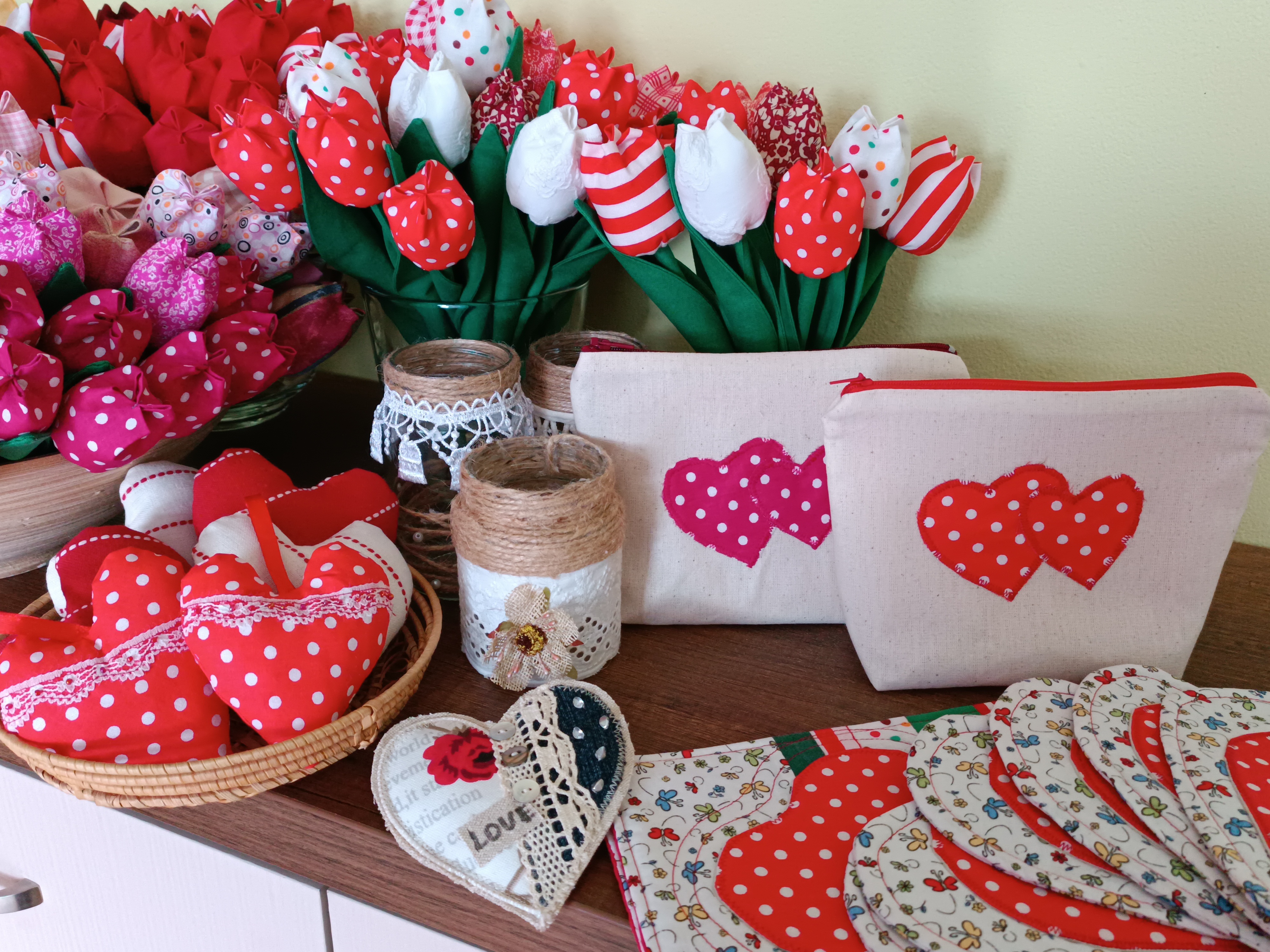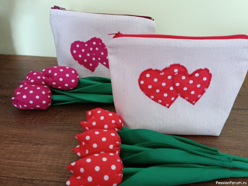 Всем привет. На днях редактировала профиль и ужаснулась фактом, что целый год ничего не выкладывала. Постараюсь наверстать пропущенного. Показываю тюльпаны, которые с дочкой сшили к праздникам и некоторые сердечные поделочки.