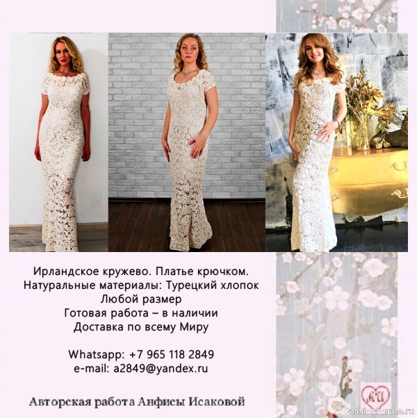 Ирландское кружево. Платье крючком. Натуральные материалы: Турецкий хлопок.