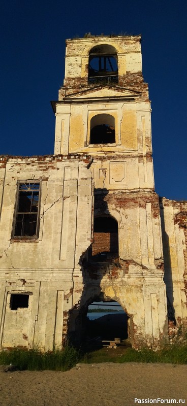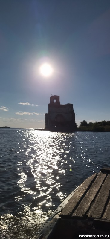 Если вы никогда не слышали об этом селе и этом храме, то храм вы точно видели в фильме «Калина красная». Как бы проводится параллель между загубленной жизнью главного героя и разрушенным храмом. Так храм выглядел спустя 10 лет после затопления. Здесь целостность здания еще сохраняется