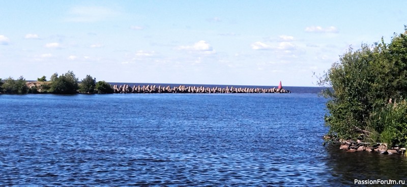 Пролив из канала в озеро. Чтобы снизить волнение в канале во время сильных ветров был сооружен волнорез.