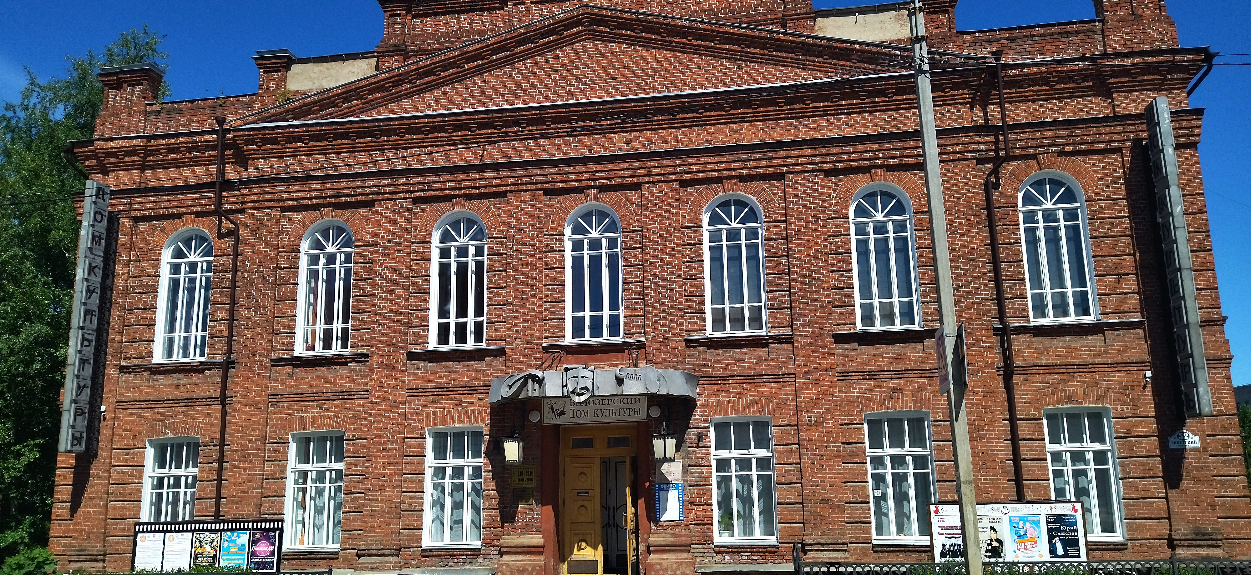 Бывший купеческий клуб. Начало 20 века. Здесь проходили собрания, вечера, существовал народный театр. Сейчас это Дом культуры. Здесь проводятся концерты, литературные вечера.