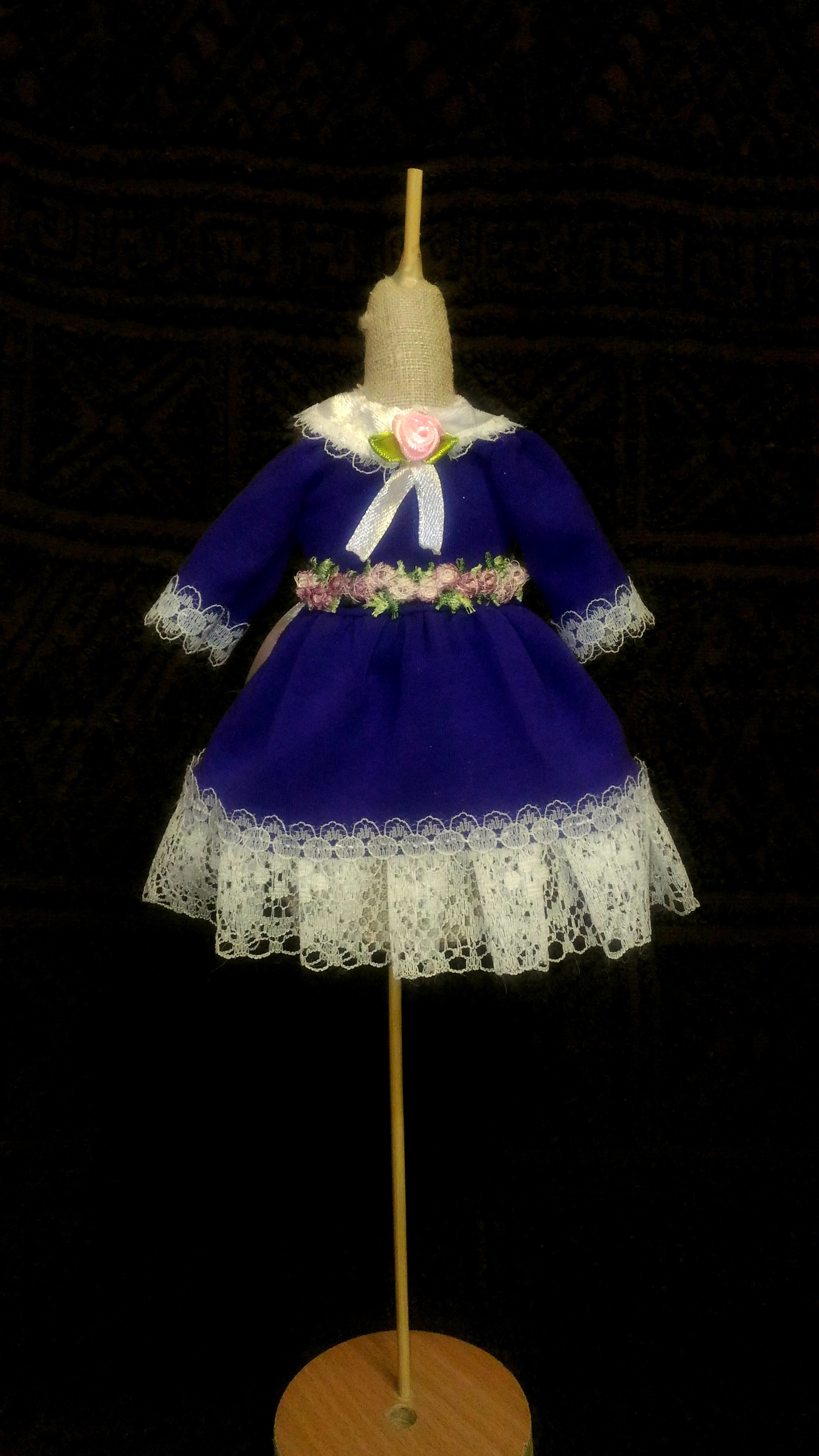 Маленькая куколка ручной работы, высота 21 см. Головка, ручки и ножки из запекаемого пластика. Тело мягконабивное- синтепон,текстиль. Голова поворотная. В руках и ногах проволока. Причёска не разбирается, "барашки" на висках пришиты, волосы из шерсти для валяния. Одежда сшита полностью вручную - два платья, панталончики, шляпка и туфельки, съёмные (туфельки покупные)