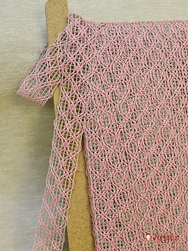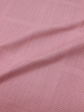 Шью кухонные полотенца из вафельного полотна-жаккарда цвета пыльной розы. Работаю с такой тканью впервые. Плотность 180 гр./кв.метр - достаточно плотная, подойдет и для полотенец гостевых в ванную. Заявленная ширина 190 см. По факту - 186 см. После декатировки ткань дала усадку до 178 см по ширине и 2 см по длине. Большие квадраты 14х15 см чередуются с жаккардовой полосой. Их решила обыграть, добавив с одного края кружево шириной 34 мм (84% хлопок, 16% полиэстер). Идеально вписалось в жаккардовую полосу 2 см.