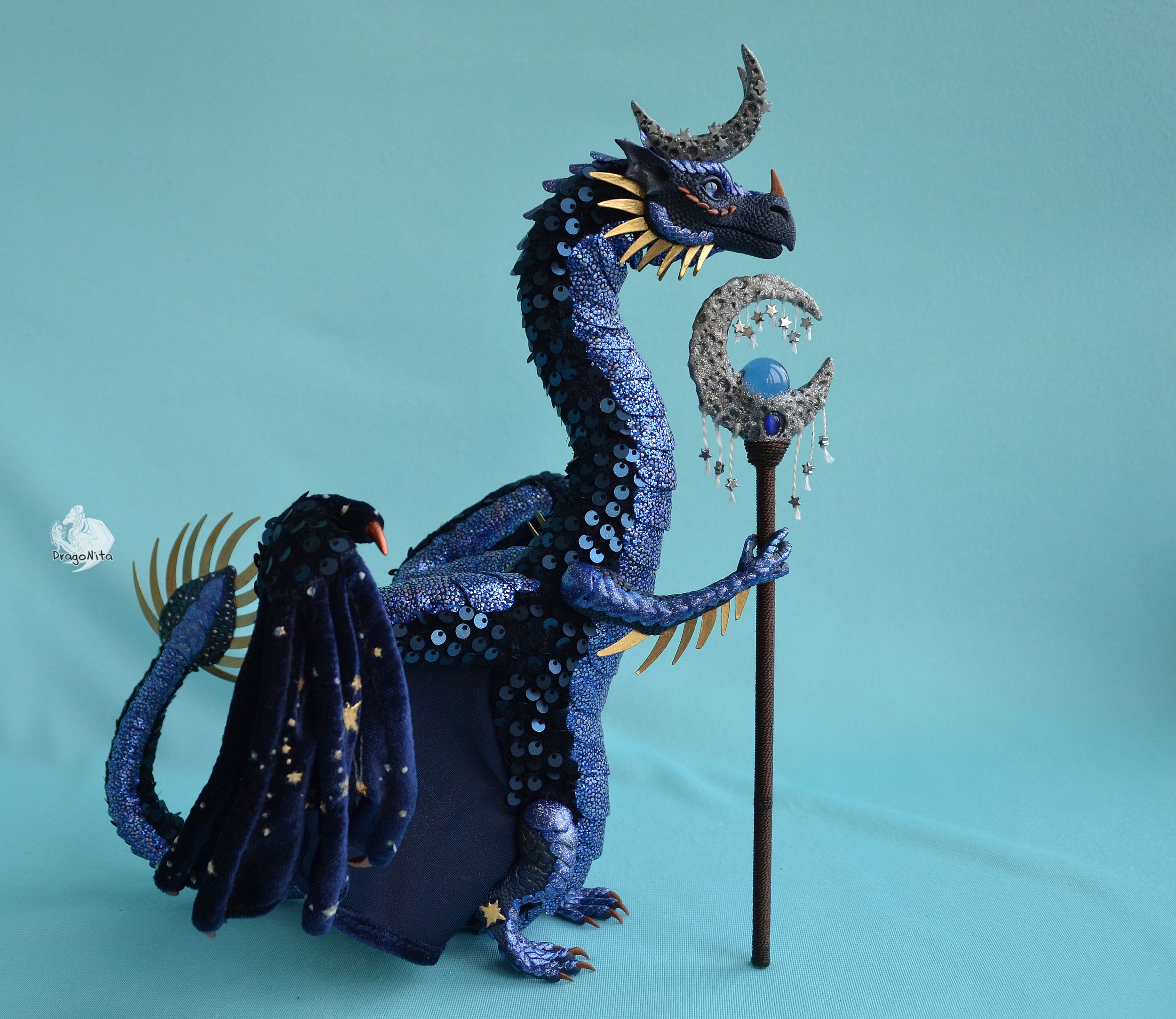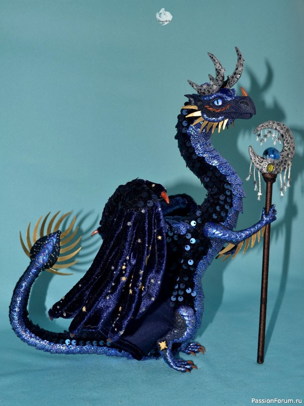 Голова, лапы, навершие хвоста, шипы и навершие посоха изготовлены из полимерной глины.
