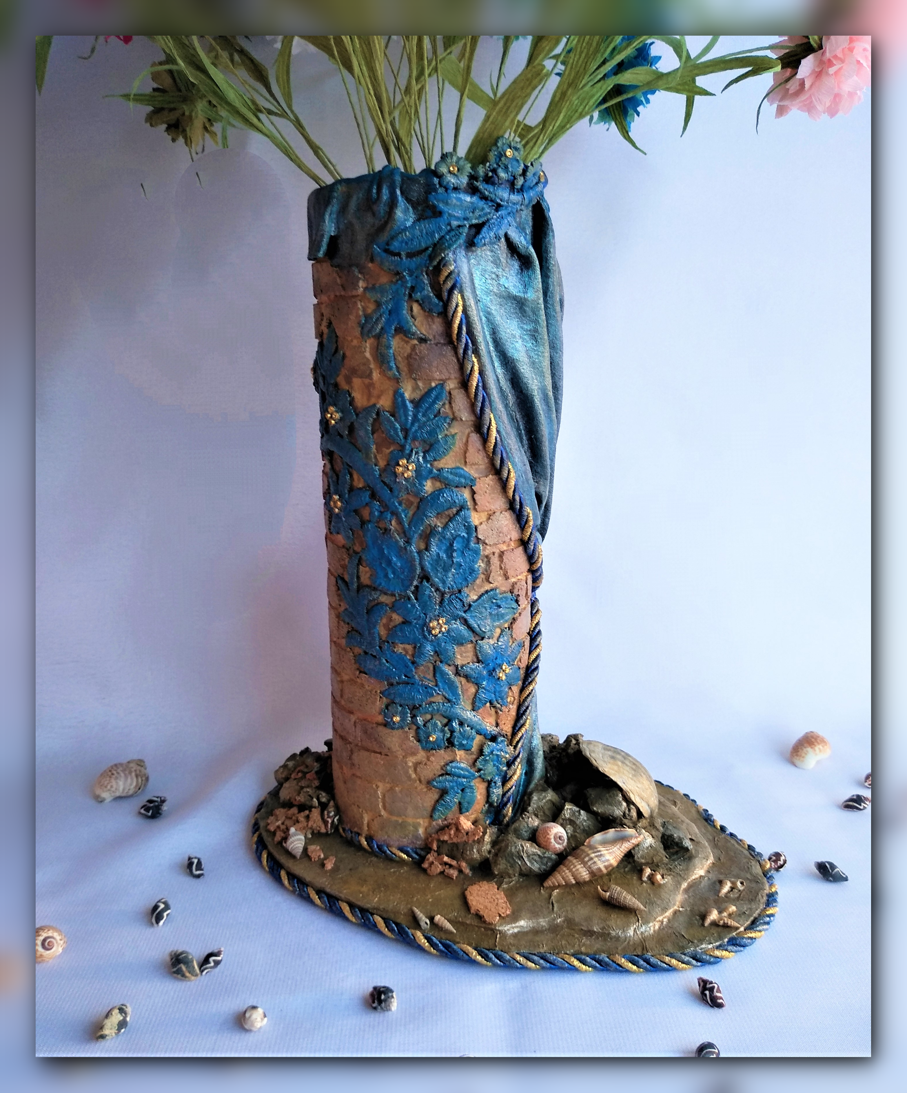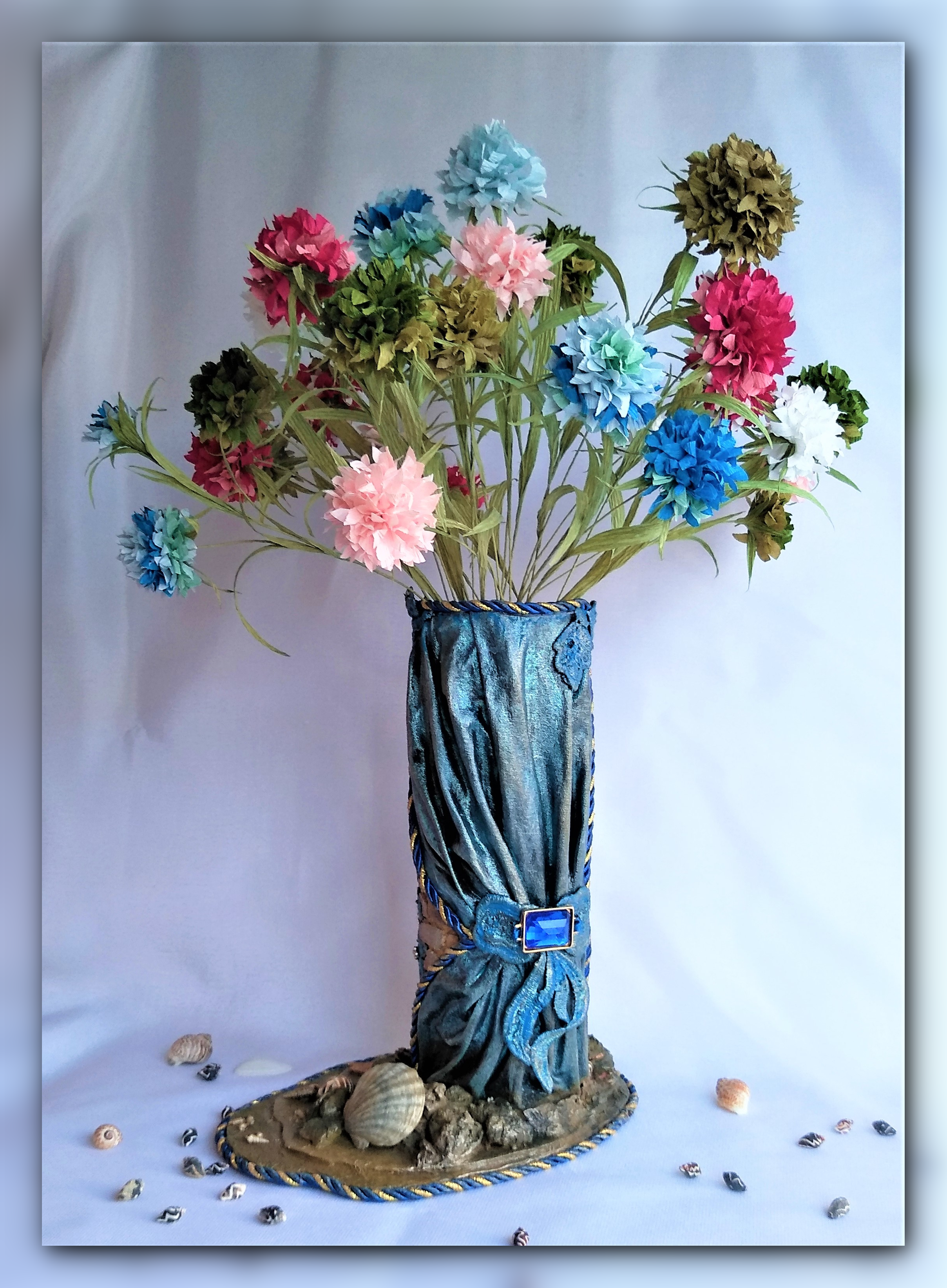 Поскольку у каждого свое понимание этого вопроса,а так же ассоциации и представления,в моём случае замысел был вложен с работу "Синий Утёс". Тема "Ваза".
