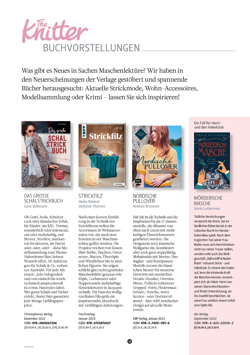 Вязаные модели спицами в журнале «The Knitter №63 2023 Germany»