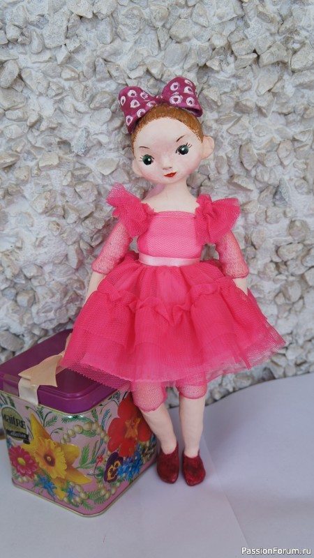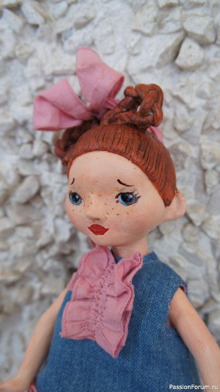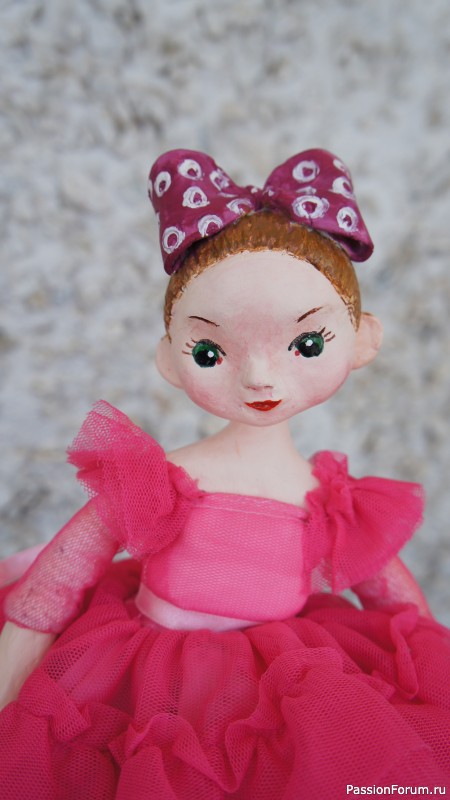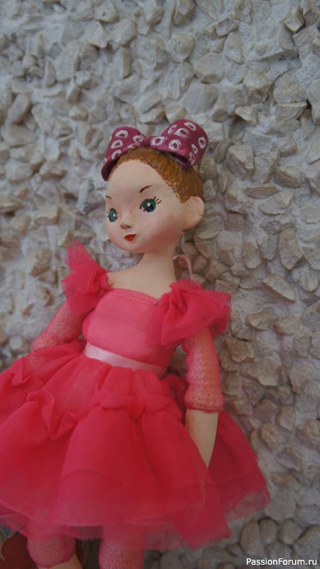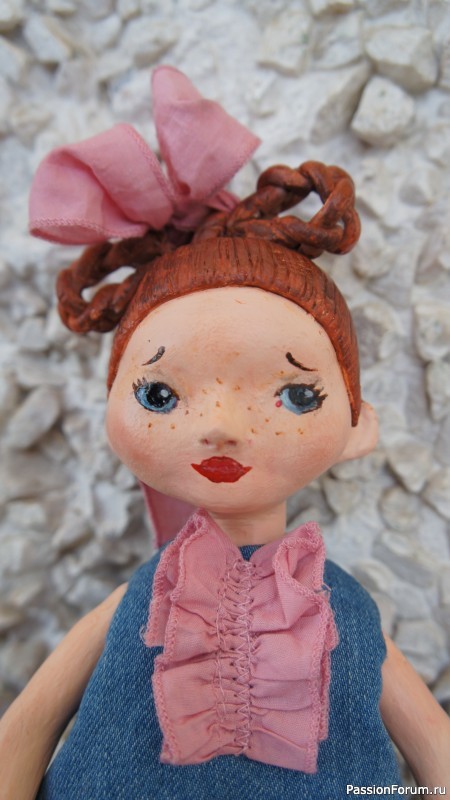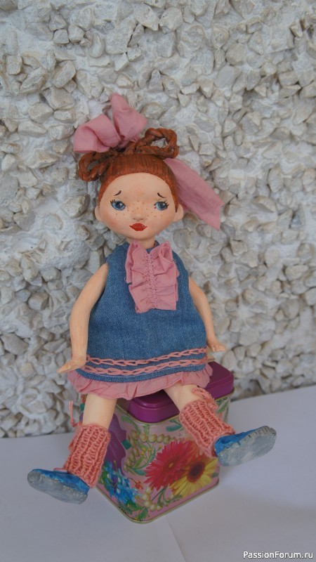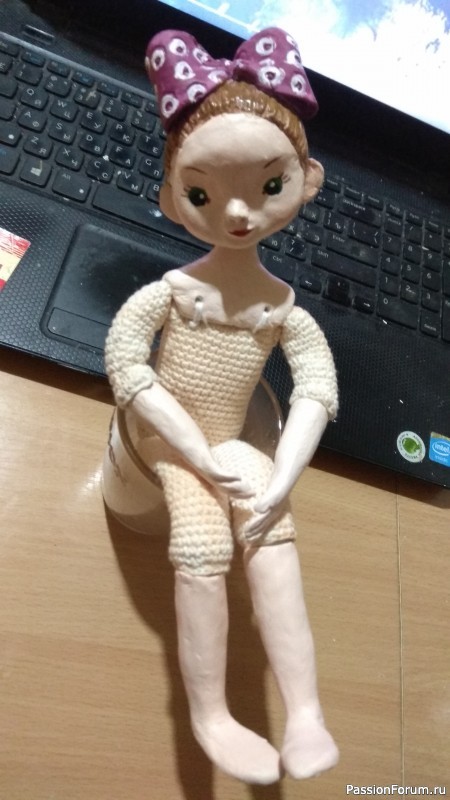Кукла Валентинка, 29 см, полимерная глина + вязание крючком.