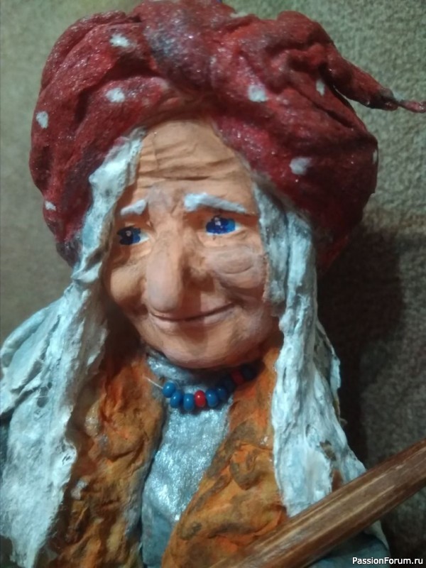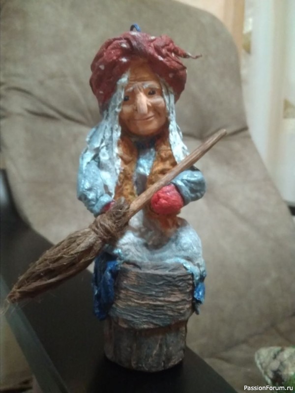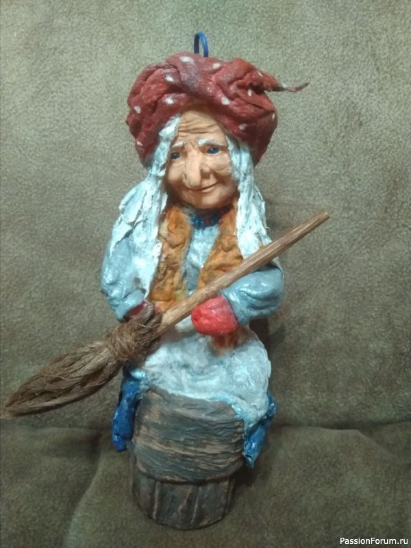Елочная игрушка из ваты, личико из полимерной самозатвердевающей глины). Баба Яга — мудрая, одинокая старушка; хоть и лесная, а всё же дама!