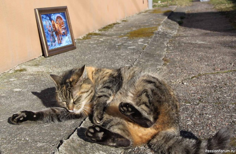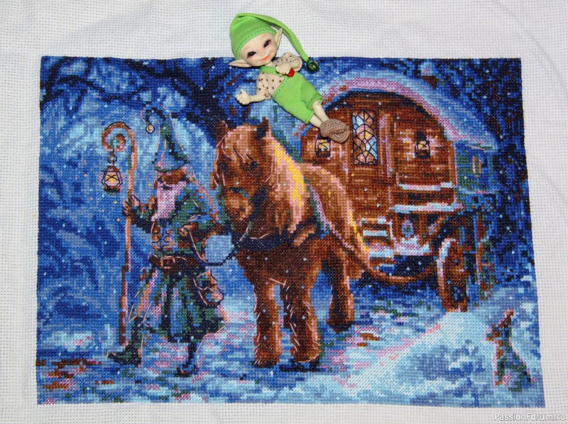 Катюша!!! Сюжет зачаровывает!!! Очень интересный!!! Сказочный!!! Помощники у тебя классные! Особенно котик!!! У тебя скоро уже будет галерея вышивок!!! Иэто круто!!!