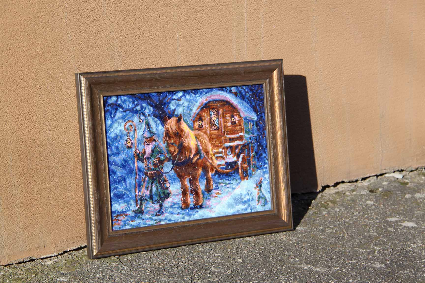 Вышивала по набору «Риолис», шерстяными нитками. Оформлена в багетной мастерской под музейное стекло. В фотосессии мне помогали Тарас и Эмилия)