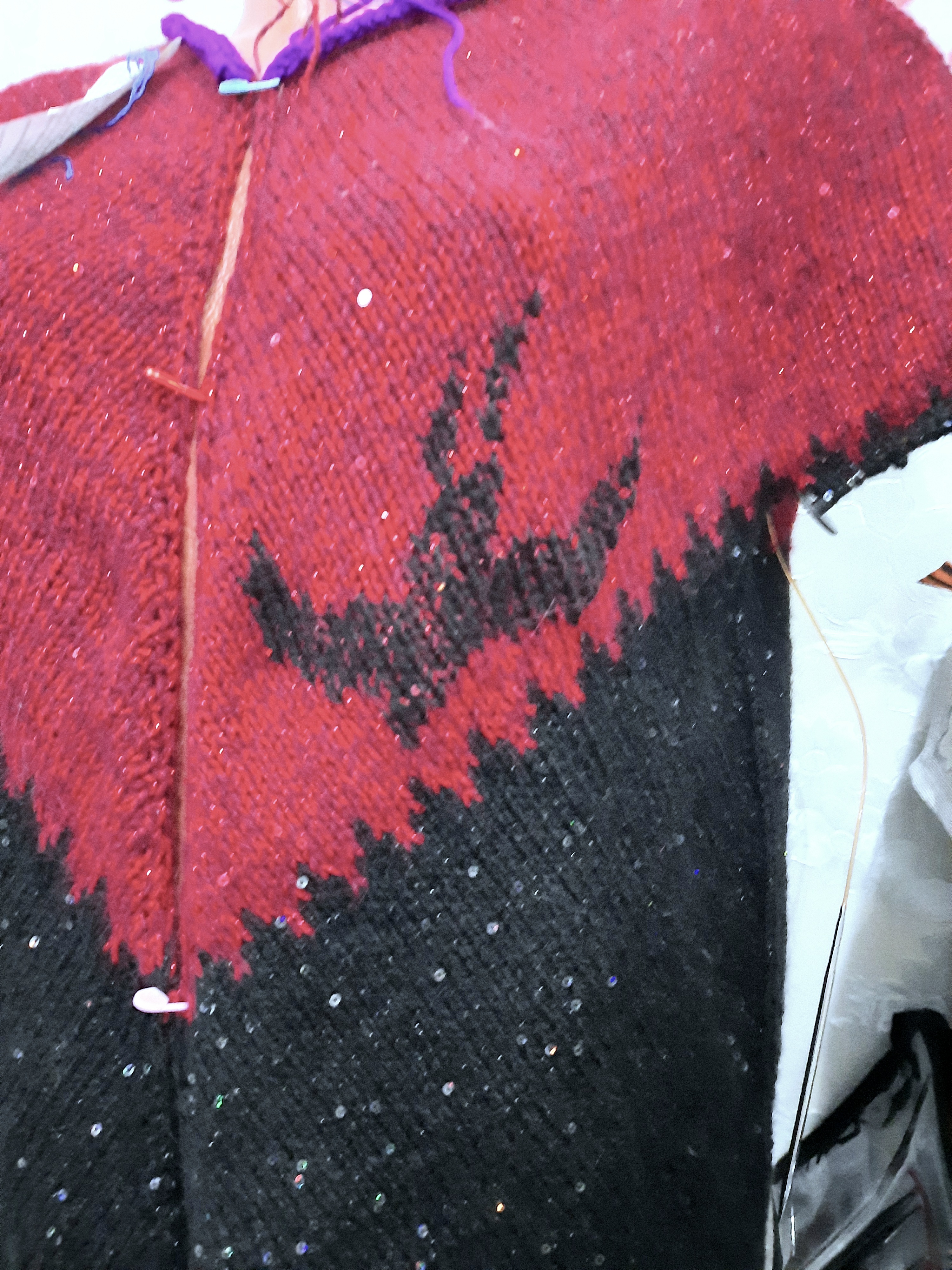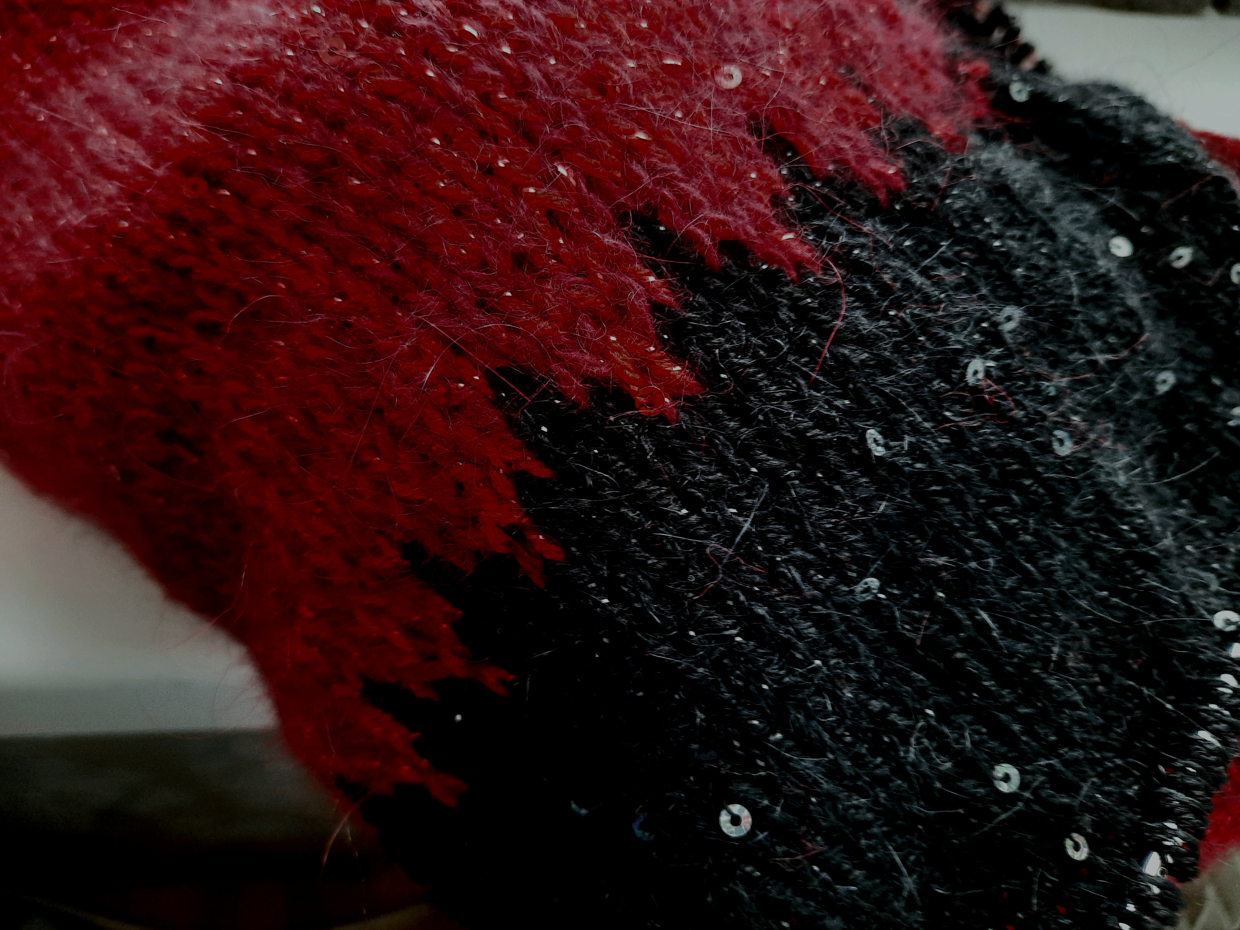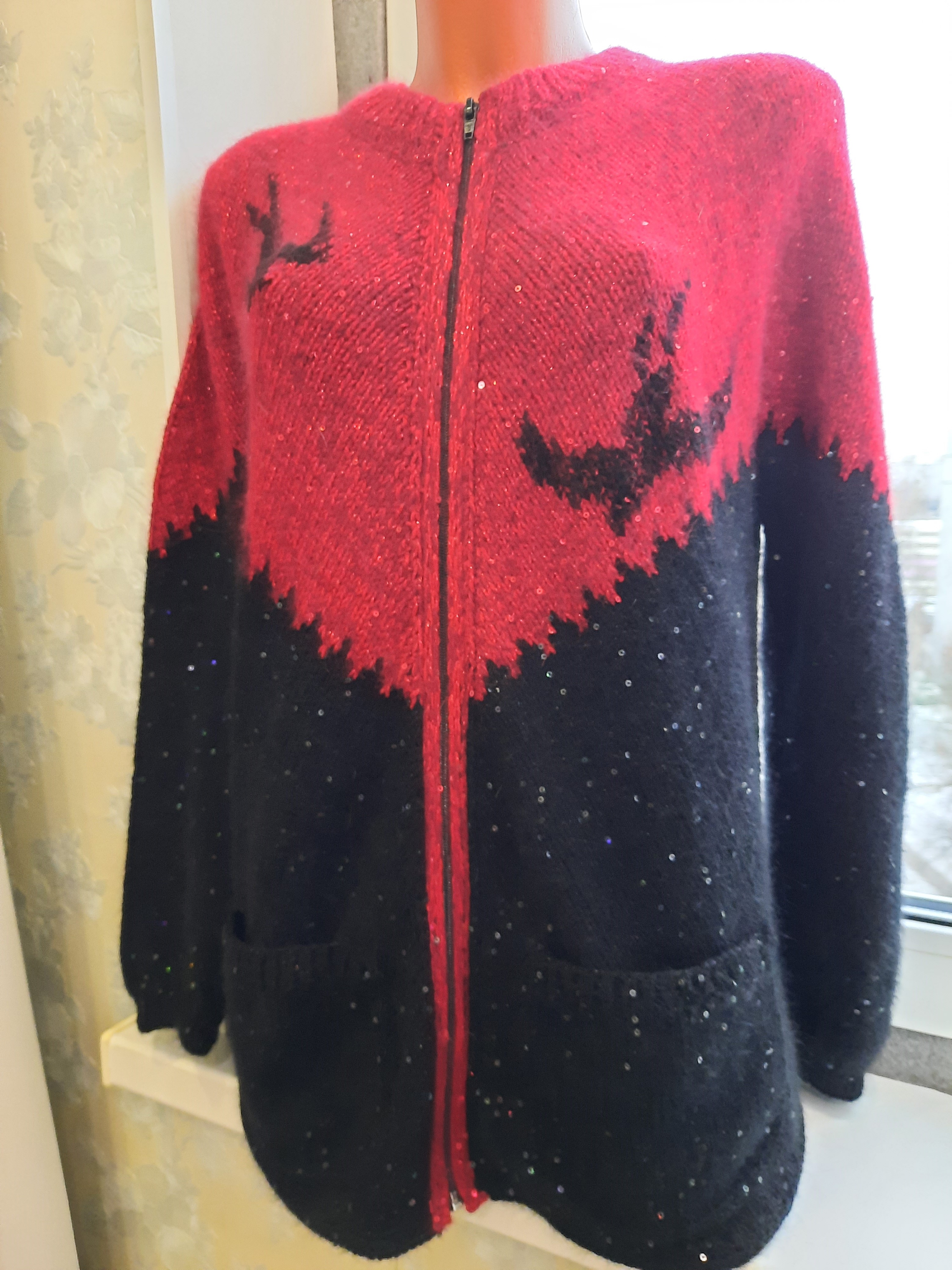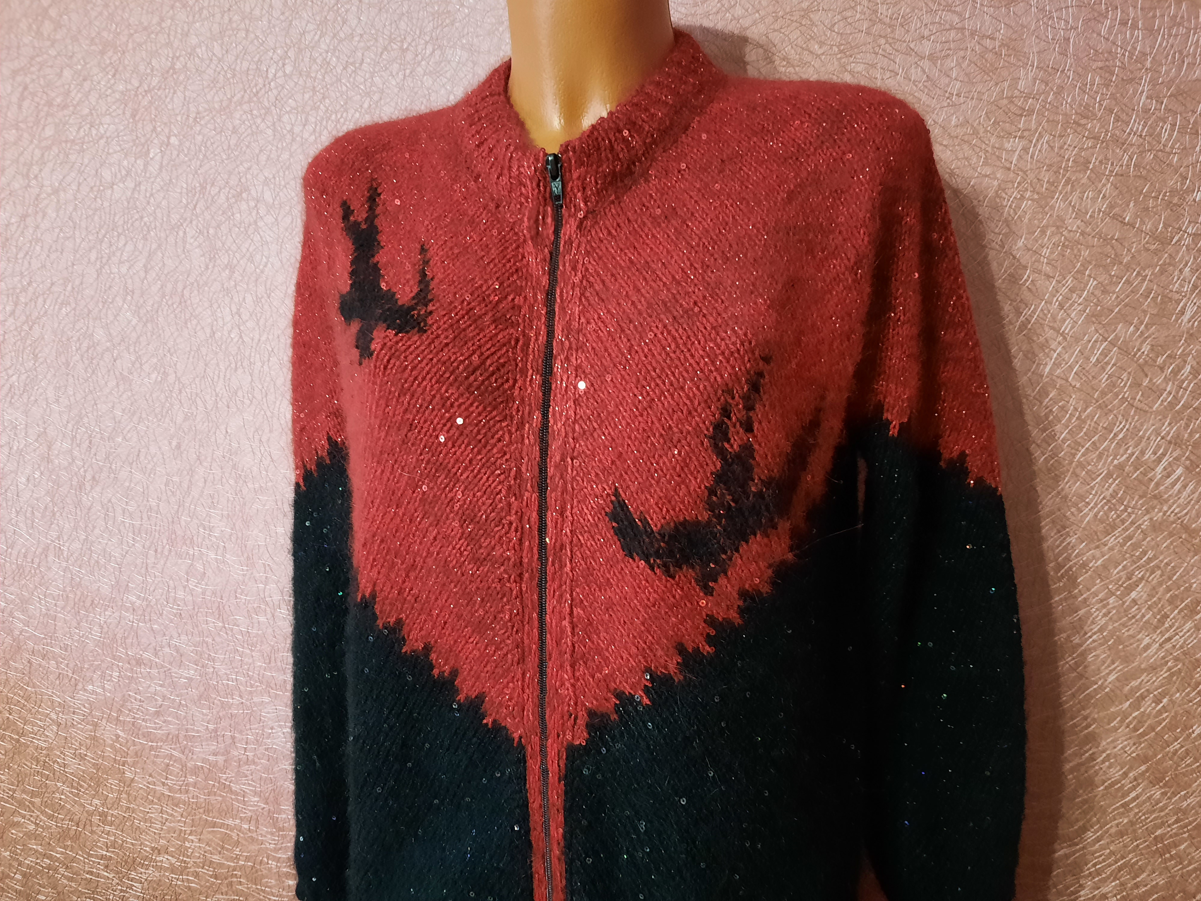 Доброе время суток всем! Когда много вяжешь, почти всегда остается пряжа 1-2 мотка и я периодически задумываюсь как ее применить. Конечно всегда легче что-то придумать когда пряжи много, а вот когда 1 или 2 мотка одного цвета и несколько другого и причем разного качества, вот нужно хорошо поразмышлять. Вот и на этот раз у меня был 1 красный и 2 черных моточка пряжи ALIZE с люрексом и пайетками и пух норки бордовый и черный. И я соединила. В результате получился не такой яркий блеск, полотно стало толще и мягче, и как результат - теплее. На такой пряже не нужен сложный узор, поэтому вязала чулочной вязкой и вышила по петлям ласточек на полочках. Вязала без швов, сверху вниз, регланом, когда петли делятся поровну на 4 части. И вот такой кардиган получился. Скоро можно будет надеть и обновить! Надеюсь у кого-то появятся новые идеи, как использовать остатки. Всем творческих успехов!