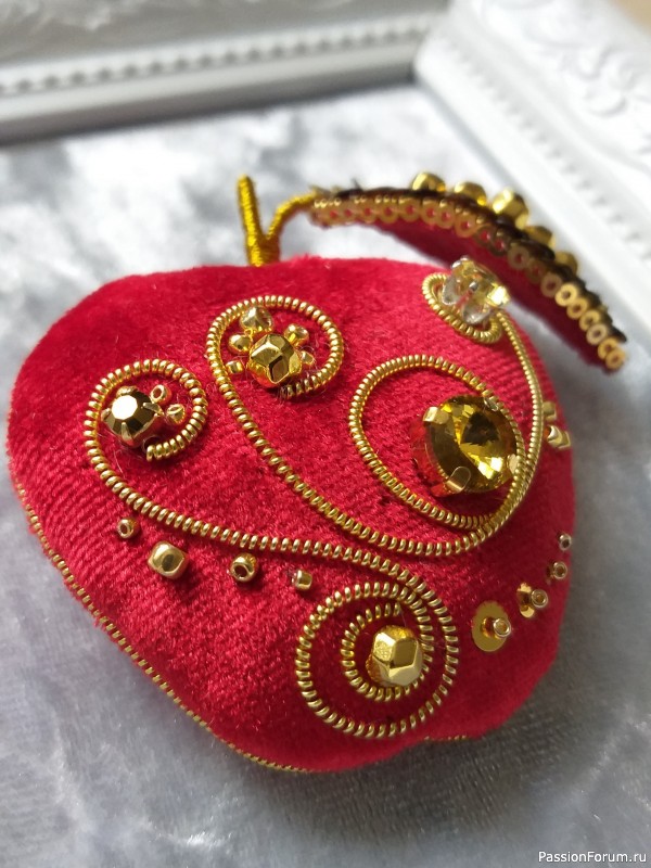 Золото и красный бархат - сочетание, как говорится, «дорого-богато». Яблочко размером 5,5*6см (вместе с хвостиком.