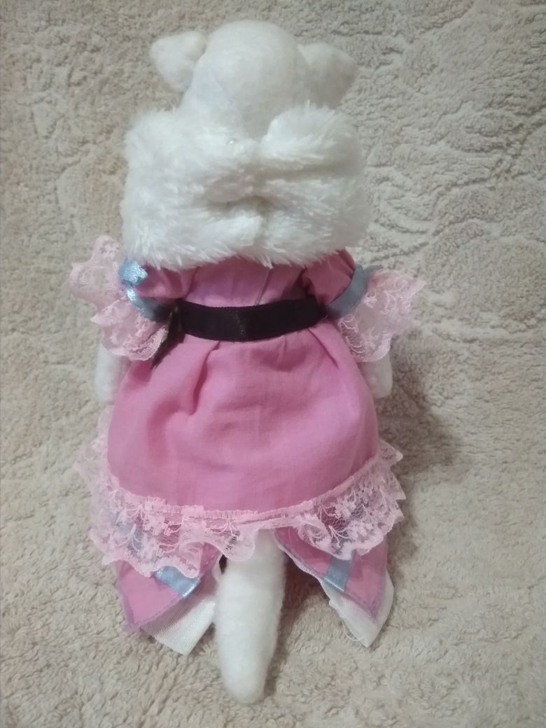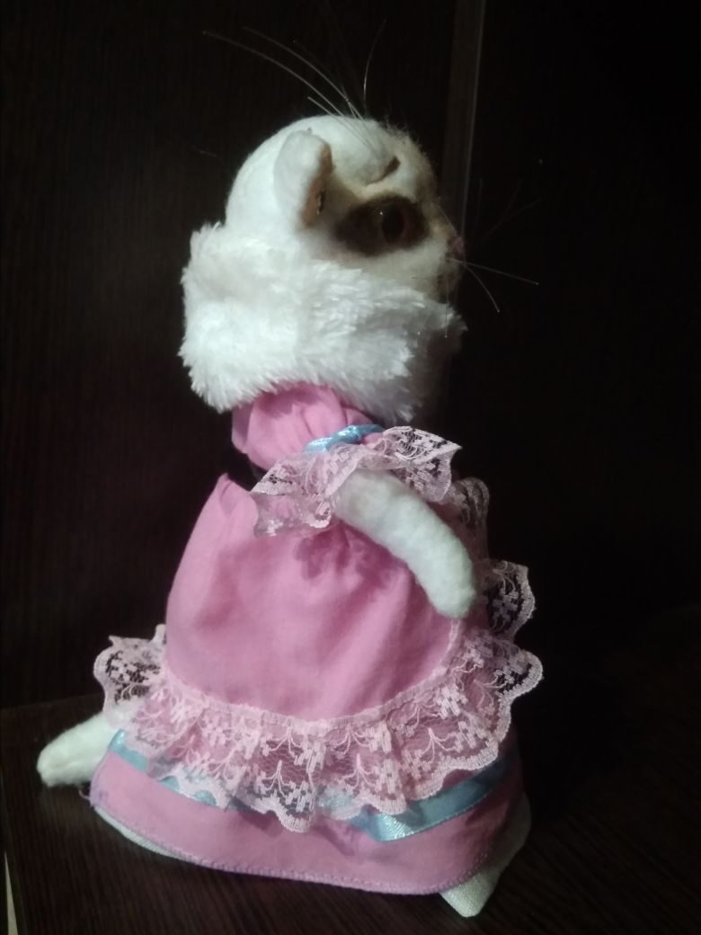 У Кошки есть нижняя юбка , батистовые панталончики с шитьём и фетровые башмачки с атласными ленточками.Всё съёмное.