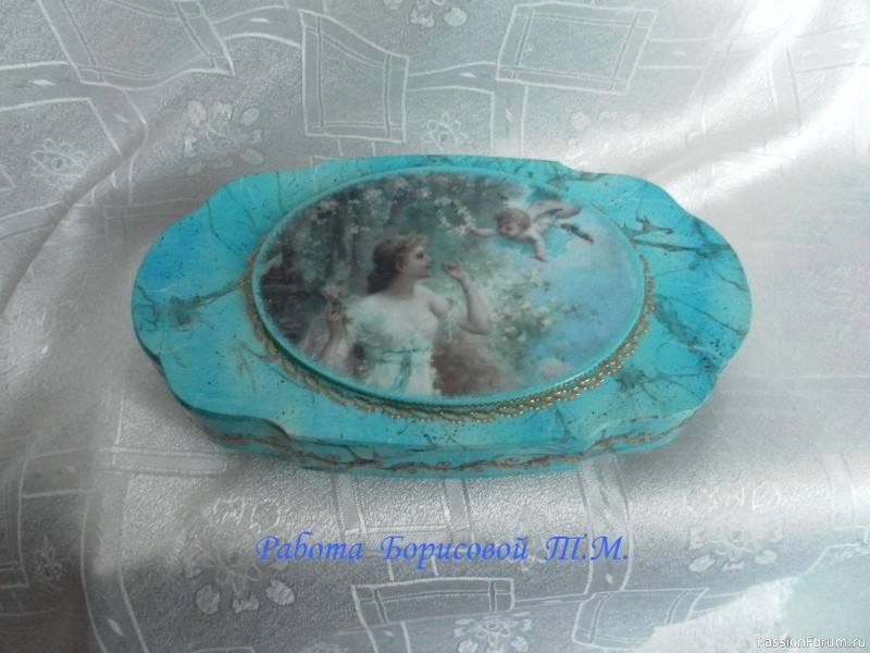 Классная бирюза!!! Красивая шкатулочка! Столько разных шкатуло и прочих работ.А я голову сломала, как ОДНУ оформить.Смотрю на нее и думу думаю… Ой долго думать буду!!!