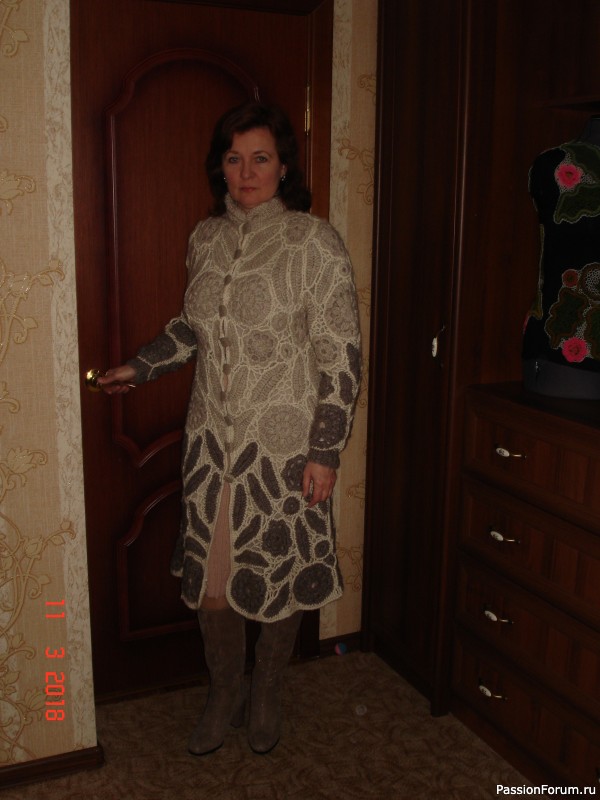 Давным-давно, лет десять назад было связано пальто. Длинное, теплое, тяжелое, из толстого чистошерстяного мохера хорошего качества . Пальто мне нравилось, но по каким-то причинам несколько лет оно пролежало в сундуке. Просто поменялся мой образ жизни, и длинное пальто стало неудобным.