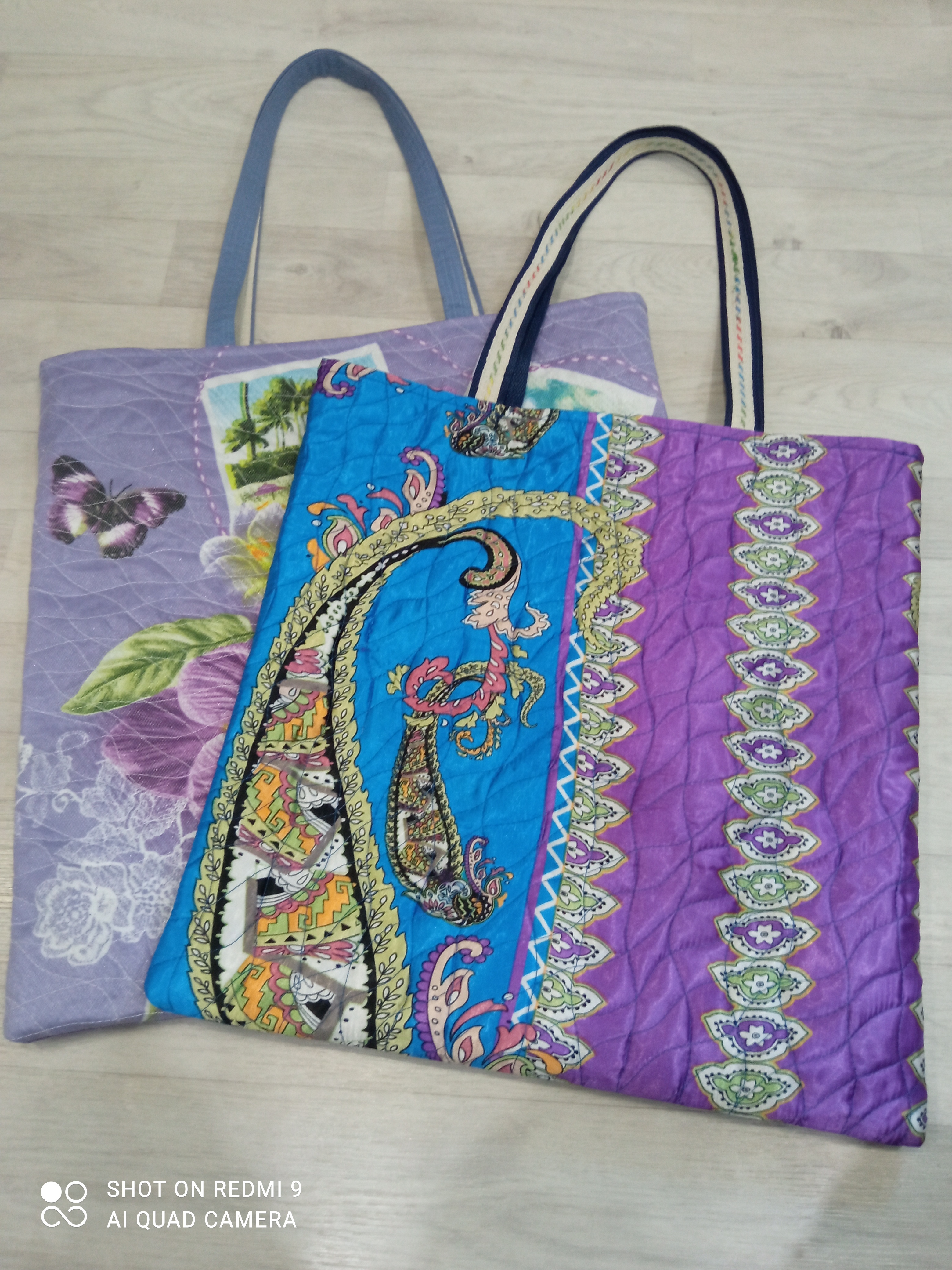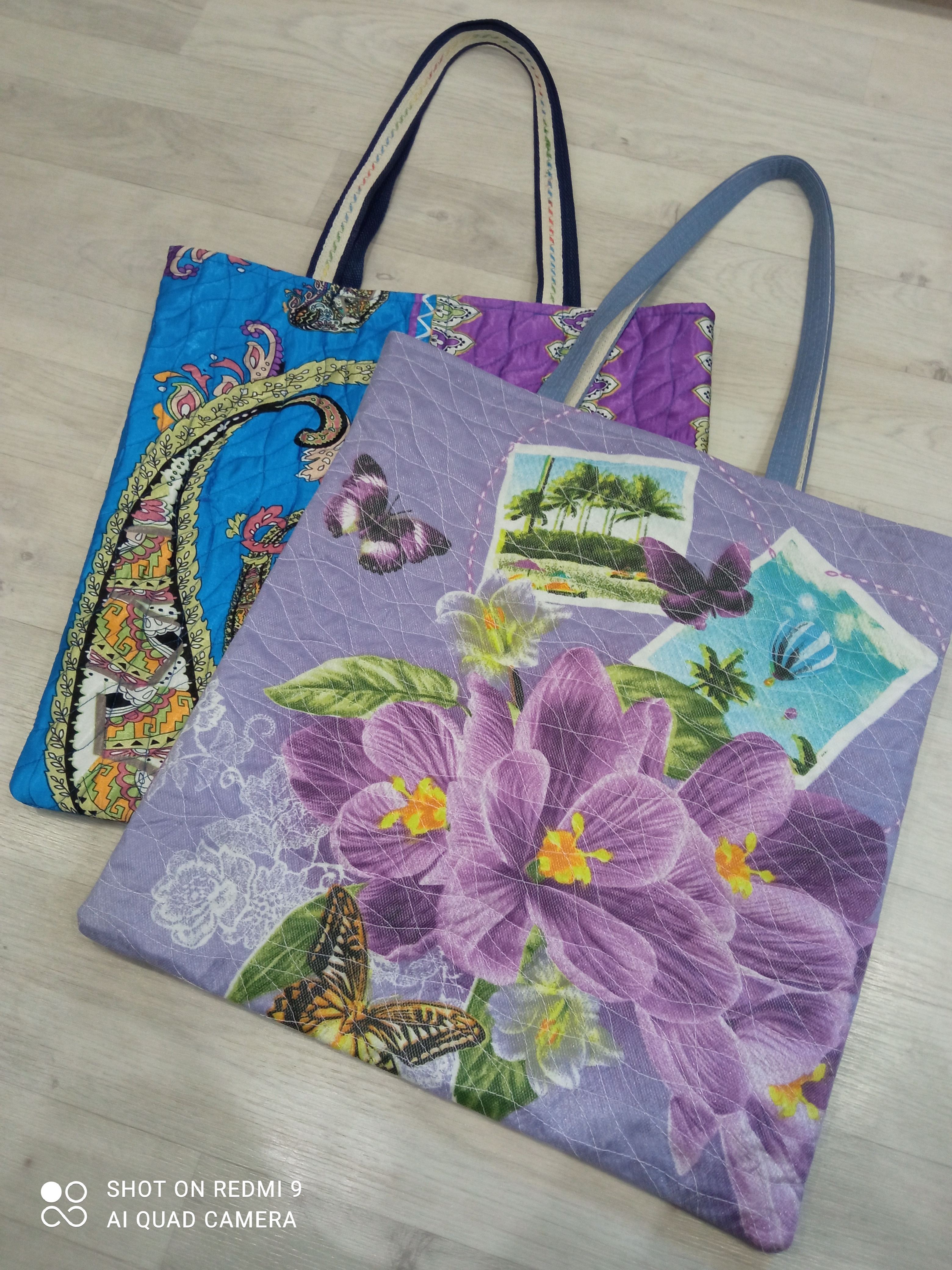 Приветствую всех рукодельниц и предлагаю посмотреть сумки шоппер на лето🌞🌴🏄. Пришла пора шить летние сумочки. Для себя и подружки я сшила по сумке для прогулок. Размер 42 х 43 см. и 40 х 41 см. Длина ручек 60 см. Они простеганы с синтепоном. Сиреневая сумка сверху покрыта сеткой. Лёгкие, прочные нарядные и удобные. При желании можно носить на плече. Приятного просмотра.
