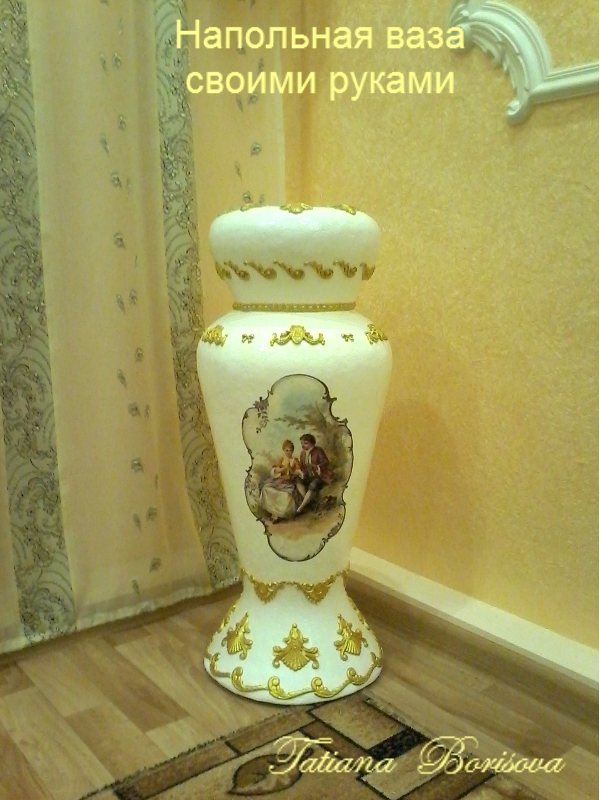 Танечка, сколько же Вы ее делали?!!! Очень красиво, грандиозная работа, с нуля сделать!!! И сама ваза восторг и декор просто супер!!!!