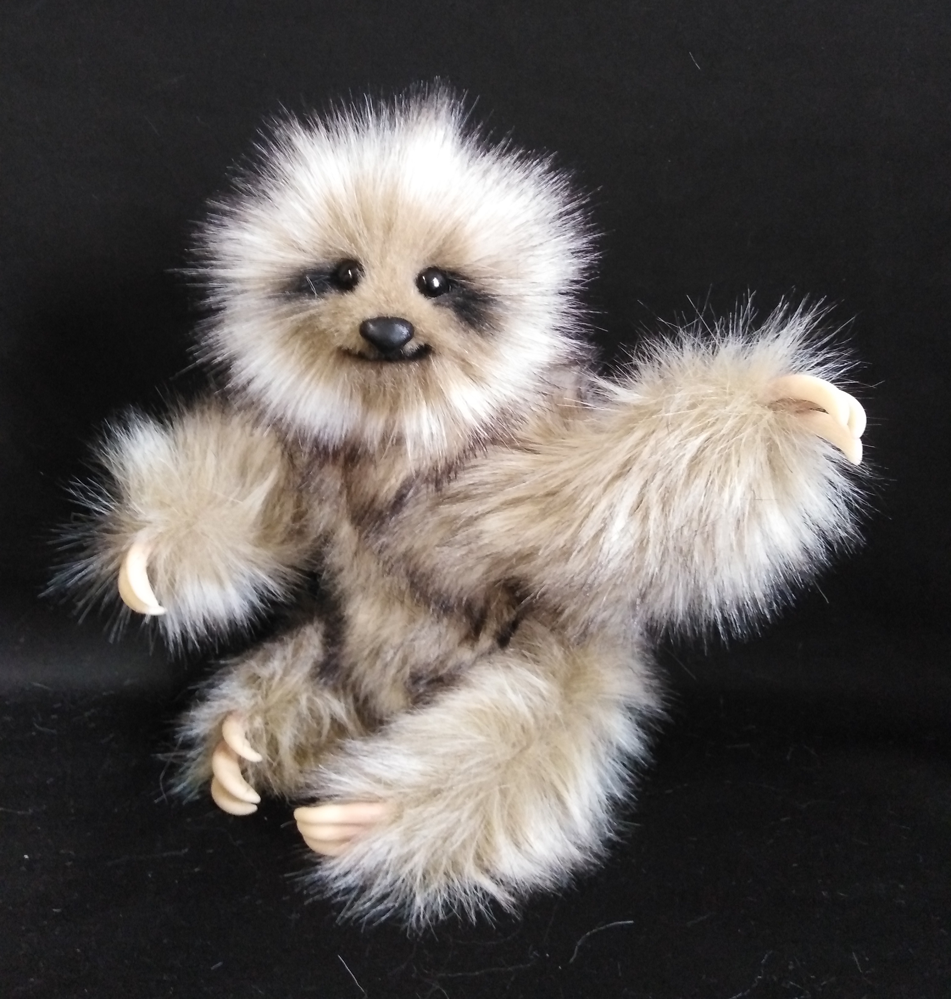 Здравствуйте. Представляю вашему вниманию малыша ленивца. Выполнен из искусственного меха. На скелетном каркасе. Полностью подвижен. Рост 20 см. Носик и коготки из полимерной запекаемой глины. Тонировка масляными красками.