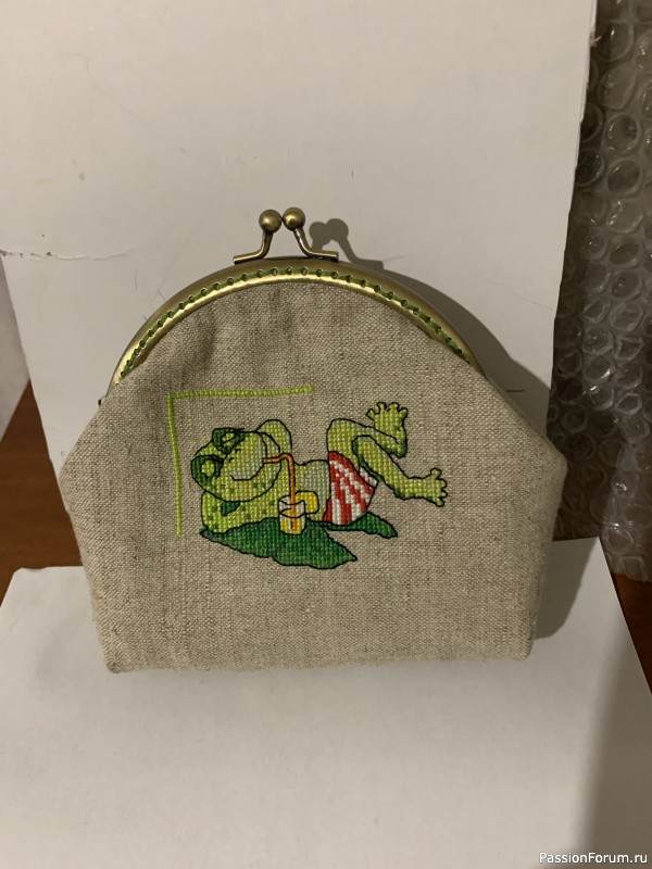 Как-то на одном из сайтов по вышивке крестиком увидела схемки этих забавных лягушат. Понравились. Решила вышить. Вот что получилось.