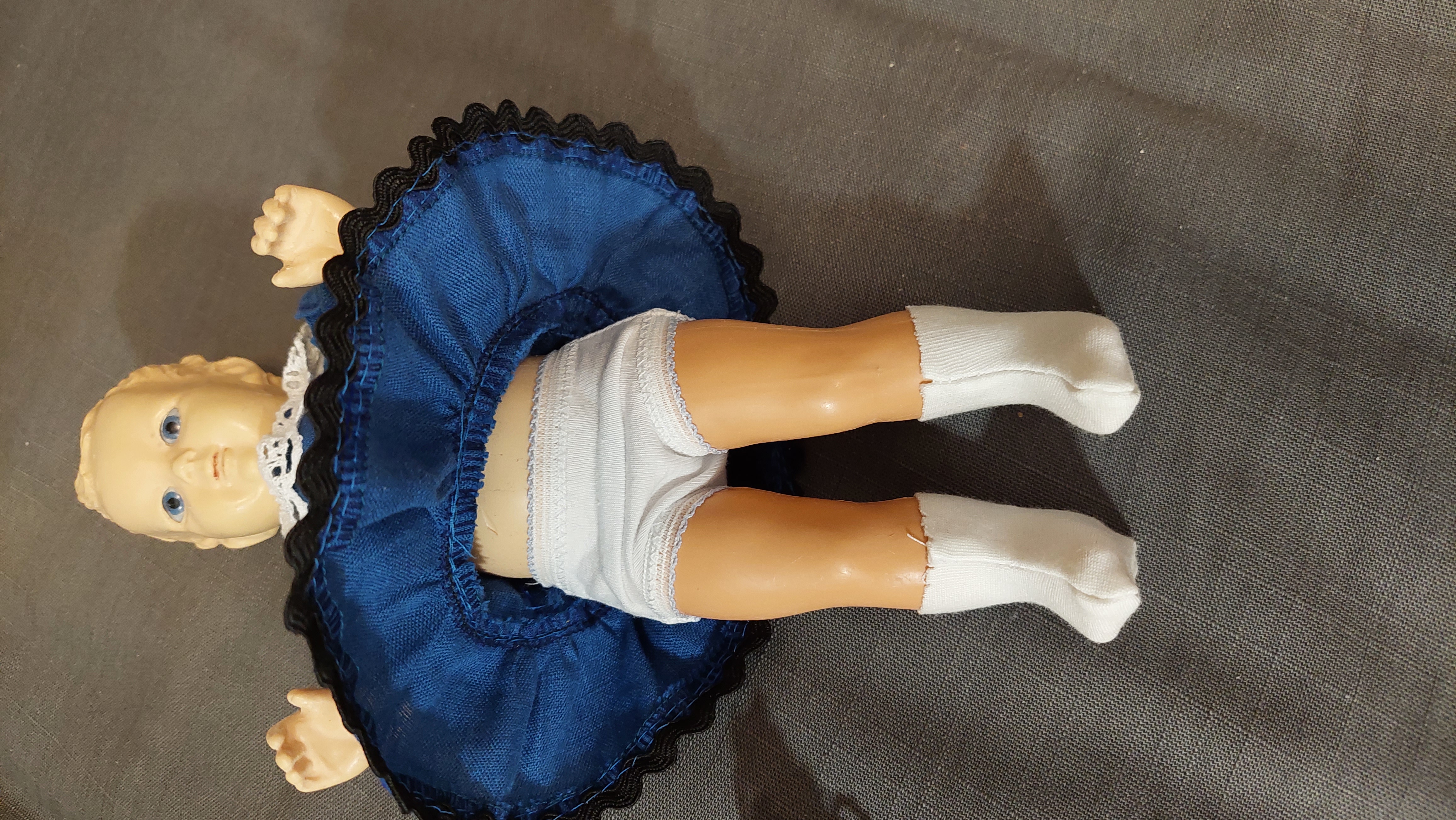 Преобразилась куколка, похорошела! Хотя туфельки всё же нужны. Про трудности шитья на таких малявок понимаю (мои игрушки-зверушки максимум 25 см, не люблю больших; но одеть-обуть малявок - нужен определённый навык).