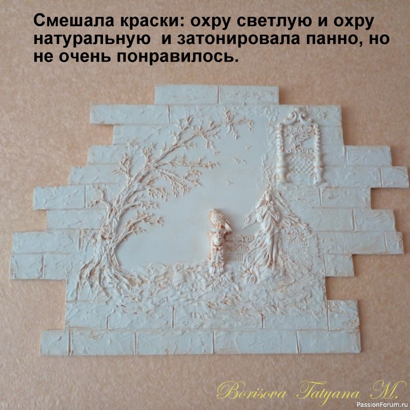 Красивое панно. Еще если рядом с ним поставить растения(пустить плющик по краю), получится красивое сочитание. Светлое панно и живые зеленые растения. Ждем следущих шедевров.