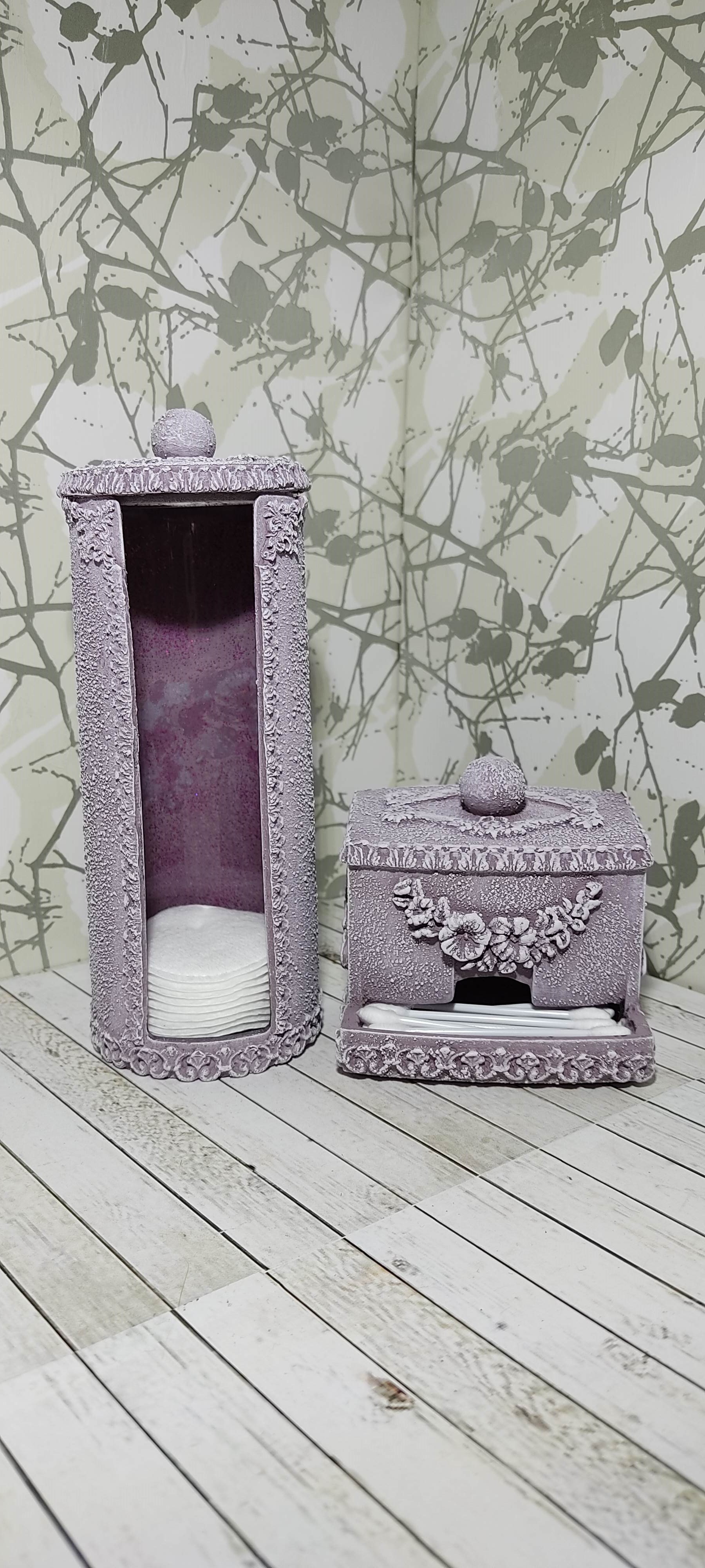 Ниночка про нежность и красивый цвет комплекта девочки уже написали- я хочу добавить про интересную идею создать такие удобные контейнеры для ватных дисков и палочек! Очень нужная вещь в доме — надо и себе подобное сделать.
