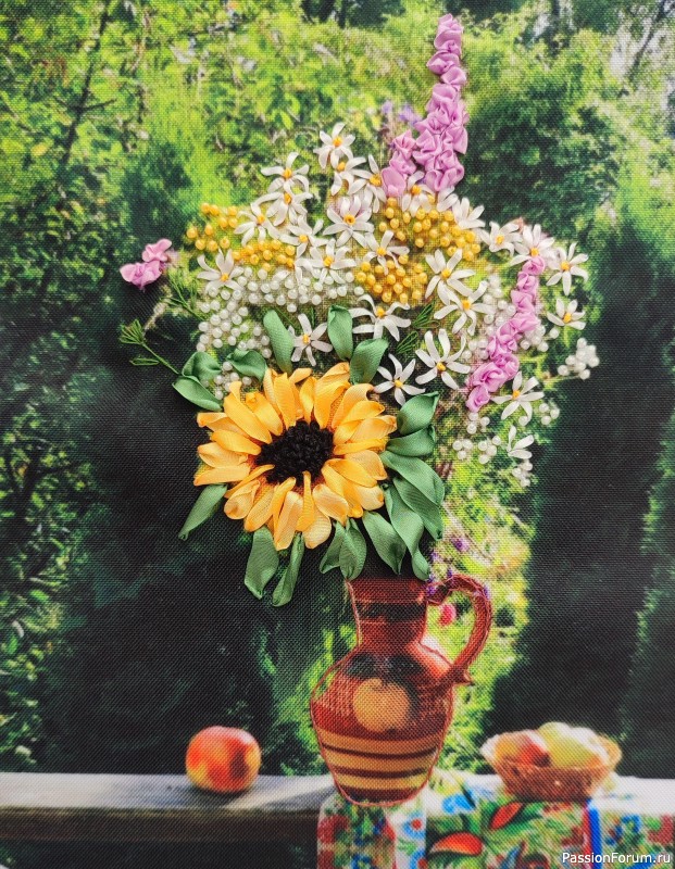Лена, вот бы Ваши вышивки перенести в наши палисадники, а то тепло в Москве, солнце светит, а красоты еще нет, хотя крокусы и подснежники уже цветут. А я себе подсолнух забираю, уж простите, пусть у меня свое солнышко будет!!!!