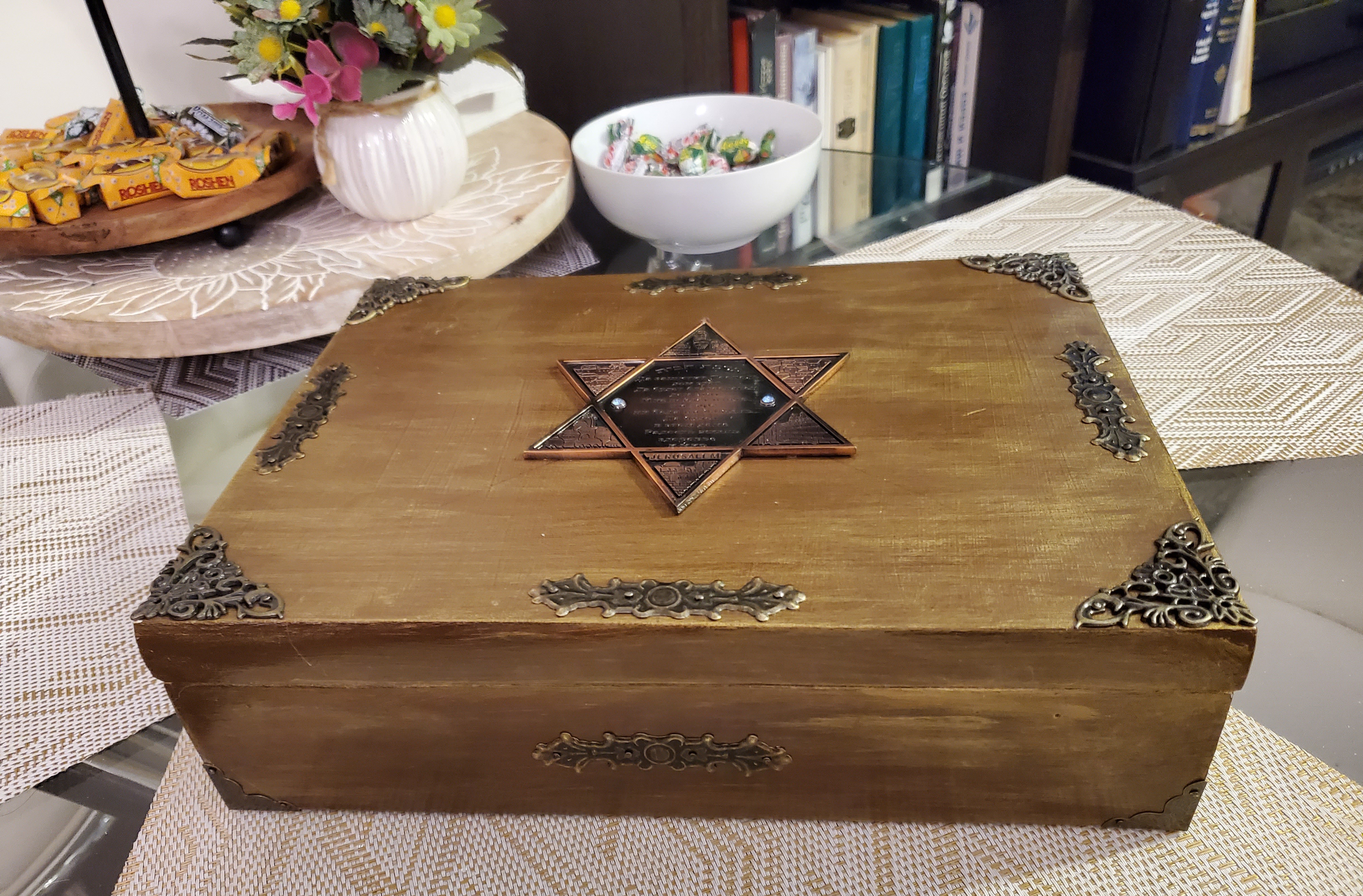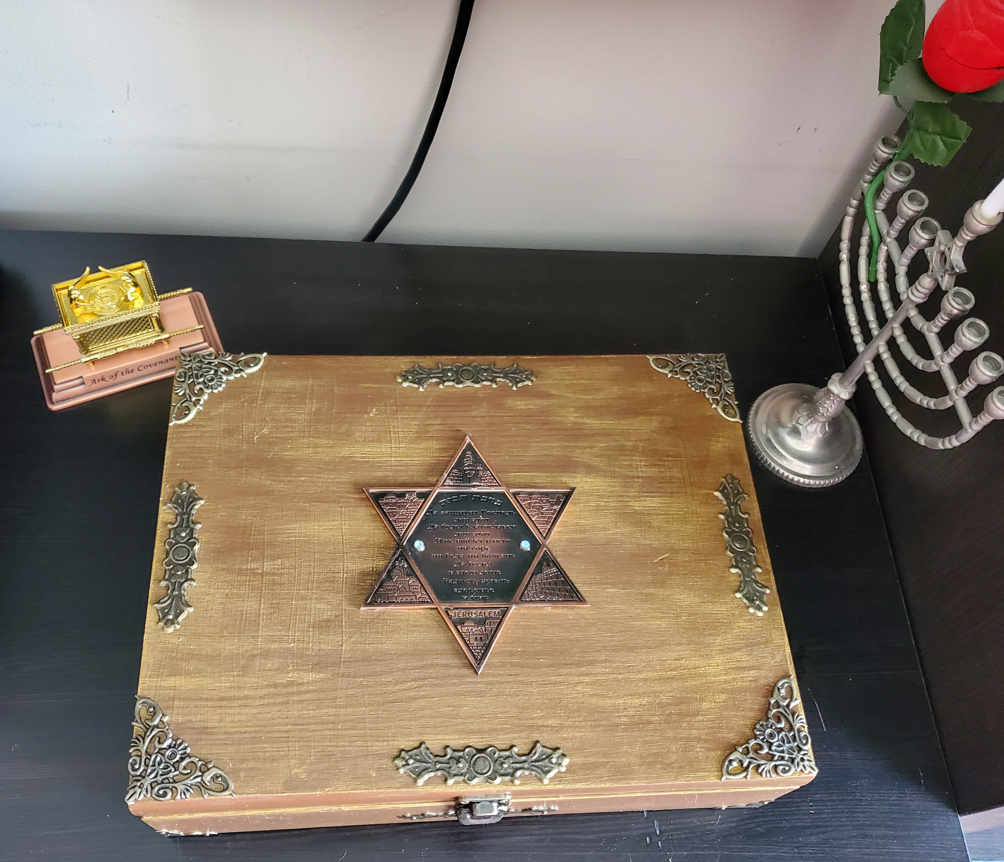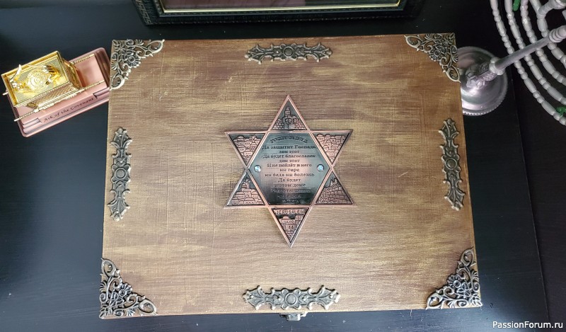 Очень красивая шкатулка. Вроде простая и строгая, но есть в ней тепло. Я бы только филиграни подкрасила под цвет звезды.