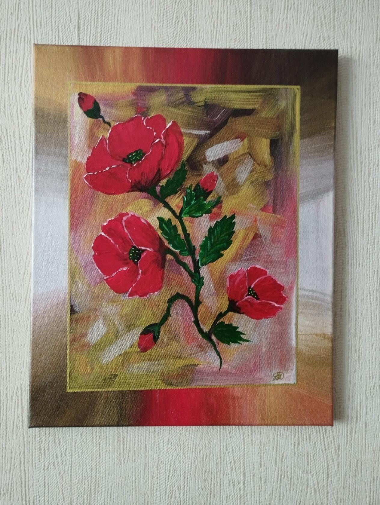 Нет.здесь краска золото и серебро.Просто я убрала черноту на цветах и, наоборот, немного осветлила маки, а то как-то мрачно смотрелись.