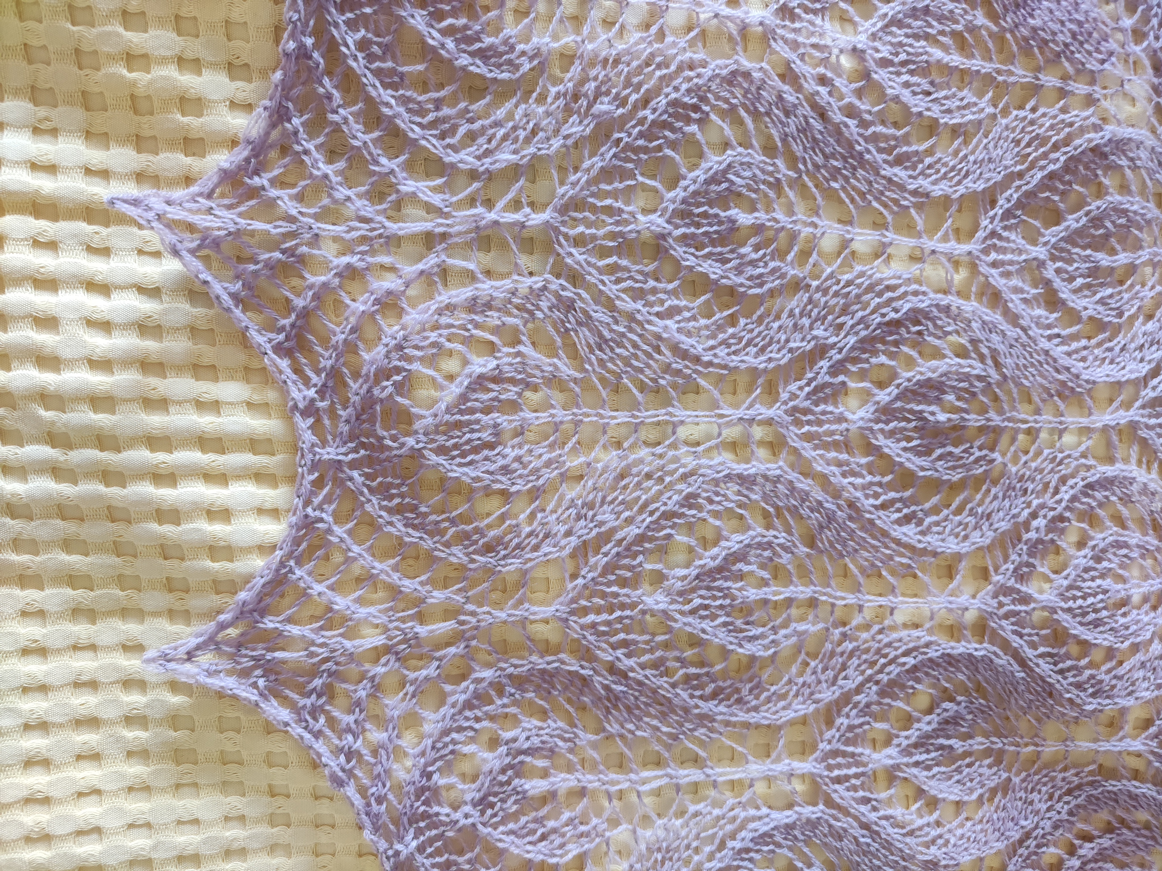Пряжа Лидия чистошерстяная 1613 метров в 100 грамм. Вязала в две нити. Спицы номер 3, но вязала очень свободно. Из мотка получилось две шали, но я специально не делала их большими. А тонюсенькие такие, воздушные....