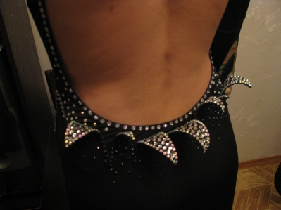 вот купальничек, который я шила и клеила… здесь стразов немного, всего 600 штук, но тоже умаялась)))
