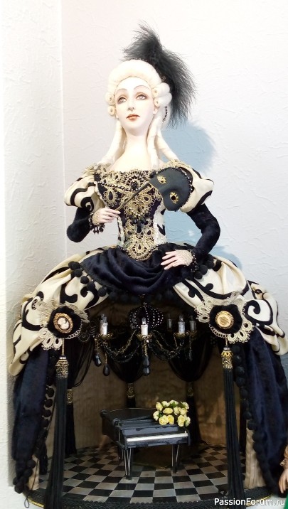 Анна! Если честно в эту игуану влюбилась с первого взгляда. Там есть ещё одна не менее шедевральная, но моё сердце успела захватить голубая. В кукле люстра включается и если ничего не путаю музыка играет.