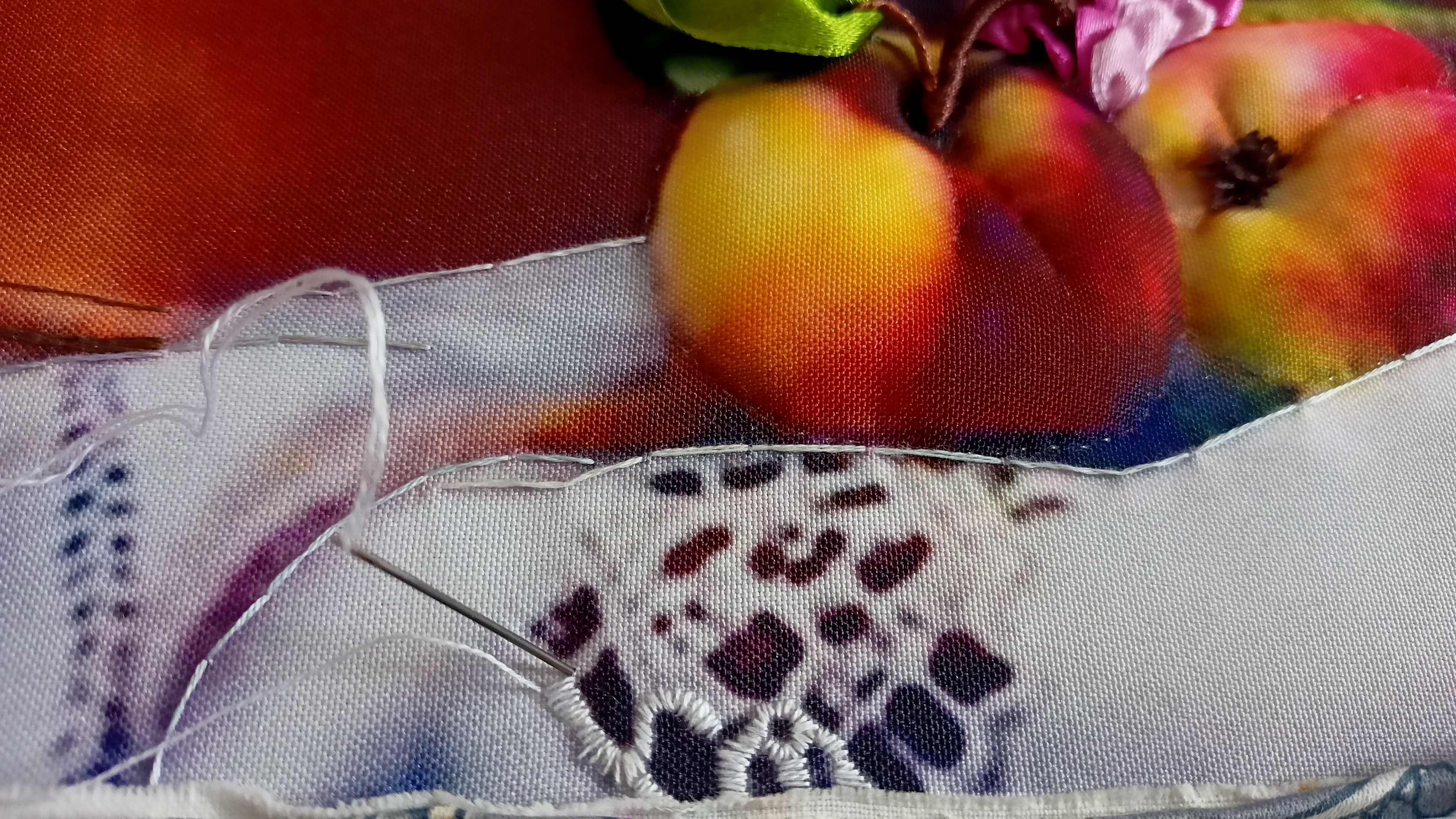 Прекрасное исполнение всех элементов вышивки во всех используемых техниках, как на переднем, так и на заднем плане картины.