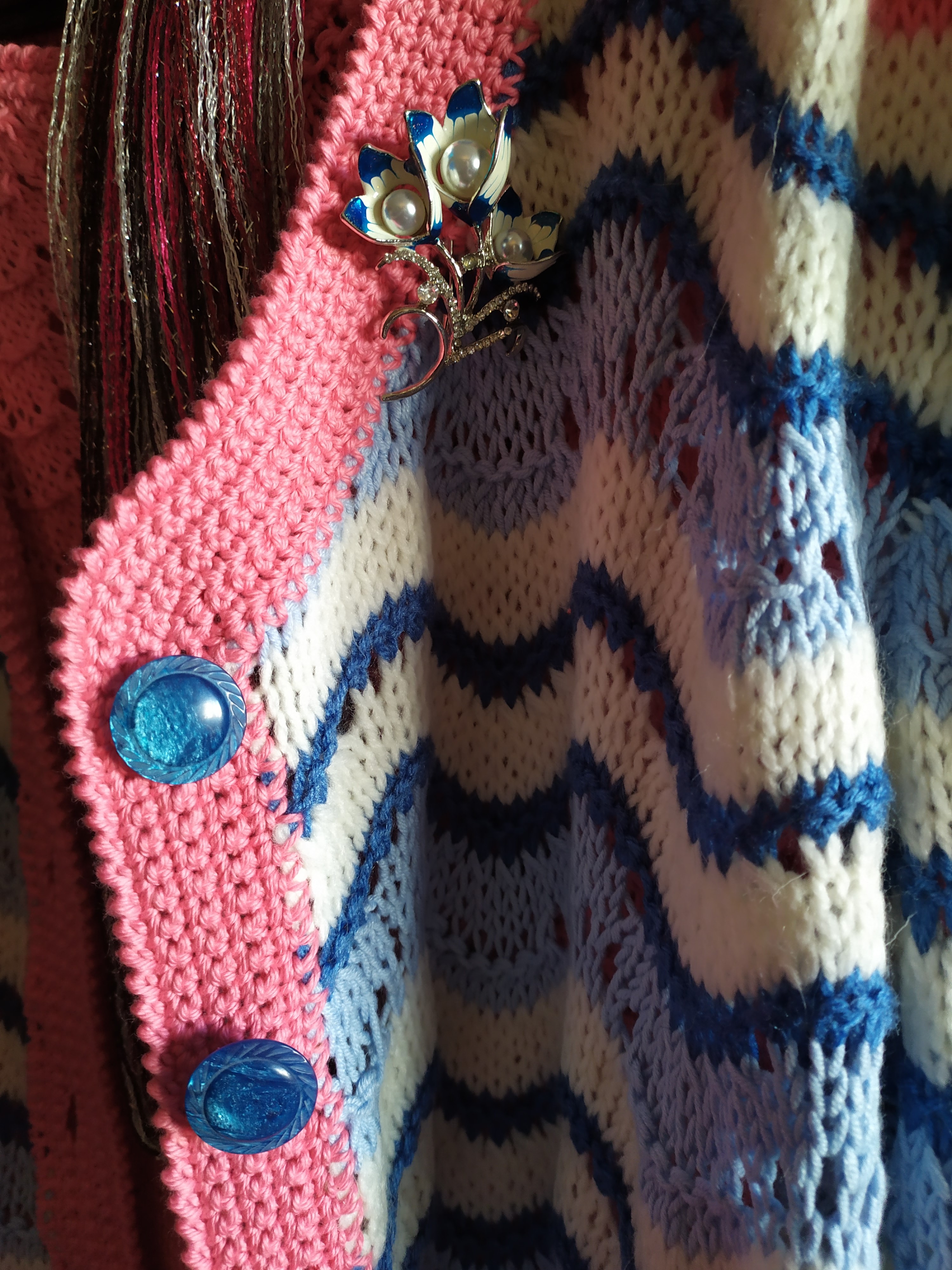 И чтобы сохранять равновесие, снова и снова в руках появляются мои волшебные палочки - спицы. Они двигаются как-будто бы сами и даже помимо воли, получается вязаное полотно снова и снова, состоящее из волн...