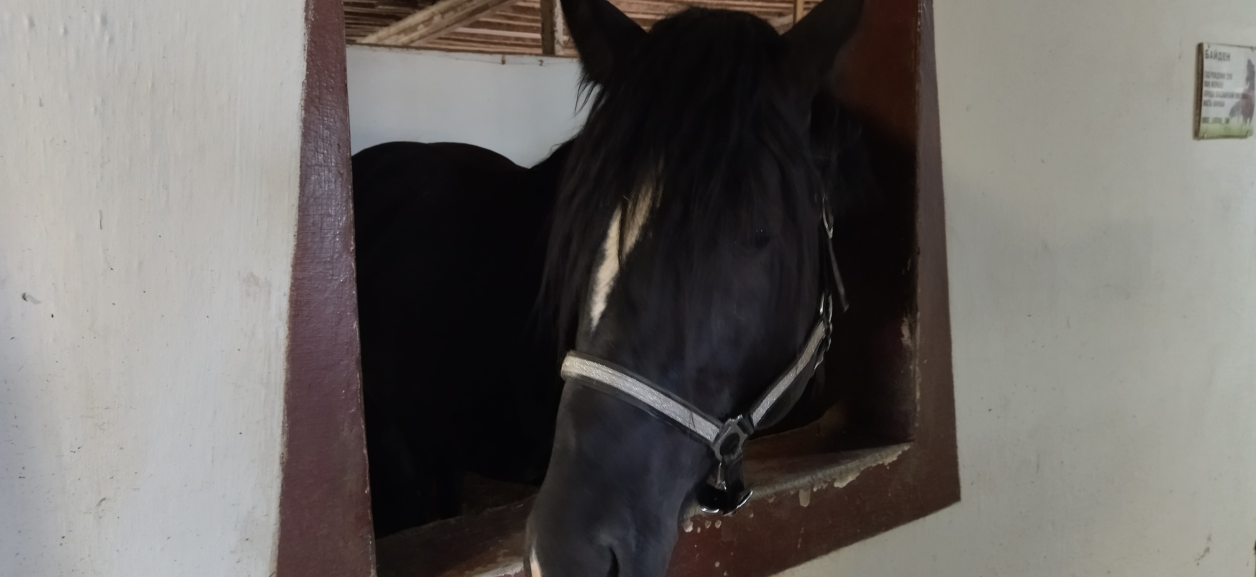 Этого коня просили не кормить. Очень неадекватный, кусается, бьет копытом, шумит.