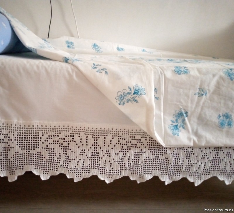 У нас тоже были такие простыни.По утрам я заправляла кровать и ОБЯЗАТЕЛЬНО был такой подзор.А на подушки надевала вышитые наволочки, они только днем красовались а если без них, то обязательно накидка на подушки.Как было уютно.Остались только воспоминания.