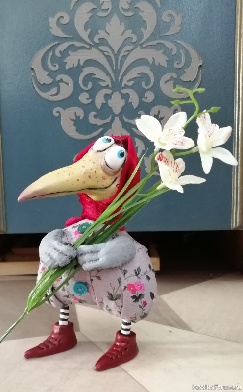 Я всегда думаю так — если в открытом доступе есть фото каких угодно работ — куклы, рисунки, фотографии и т.д. и т.п. — значит, не возбраняется сделать что-то «по мотивам» — точь-в-точь всё равно не будет. Образ использовать нельзя? ну, тогда надо патент оформлять, да чтоб все об этом знали. Похожих ворон даже в Пинтерест много. И у нас на форуме были похожие (как я говорю «по мотивам»). Всё равно у всех своя Маруся получается. Ну как её не изобразить — она ж прРРРРЭлЭстна!!!