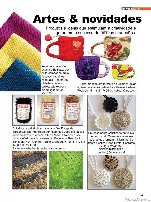 Бразильский журнал по рукоделию. Здесь рукодельницы найдут много проектов по вышивке крестиком в сочетании с вязанием в филейной технике.