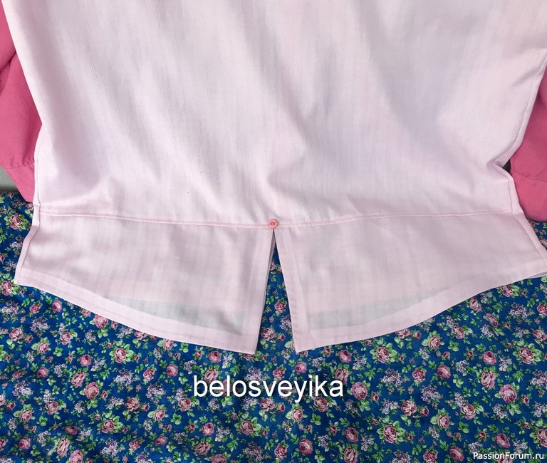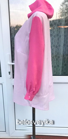 Захотела я сделать в качестве эксперимента из двух ненужных вещей, одну нужную.В наличие была одна розовая мужская рубашка , которая мне была как раз и одна хлопковая темно розовая, (почти малиновая) блузка, которая мне была мала( фото блузки нашла в компе и вставила последним).