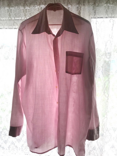 1,У розовой мужской рубашки отпорола воротник, карман, рукава, распорола боковые,