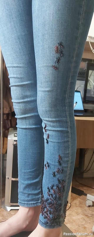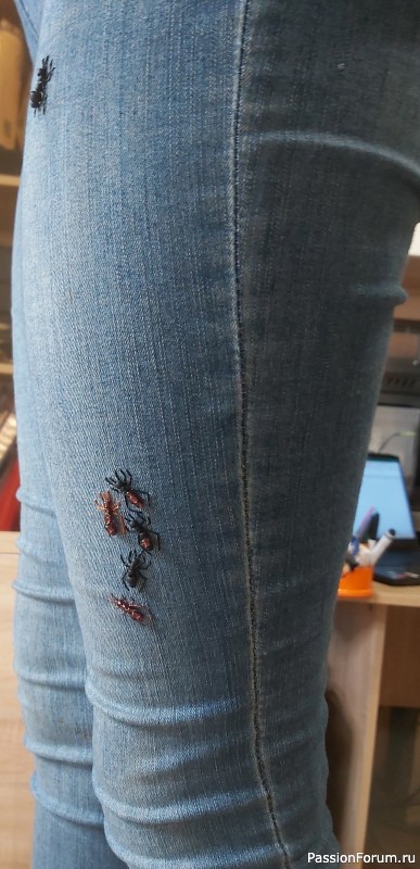 Под впечатлением от костюма с муравьями Дома Скиапарелли, решили, что нужны джинсы с муравьями. Получилось довольно реалистично.