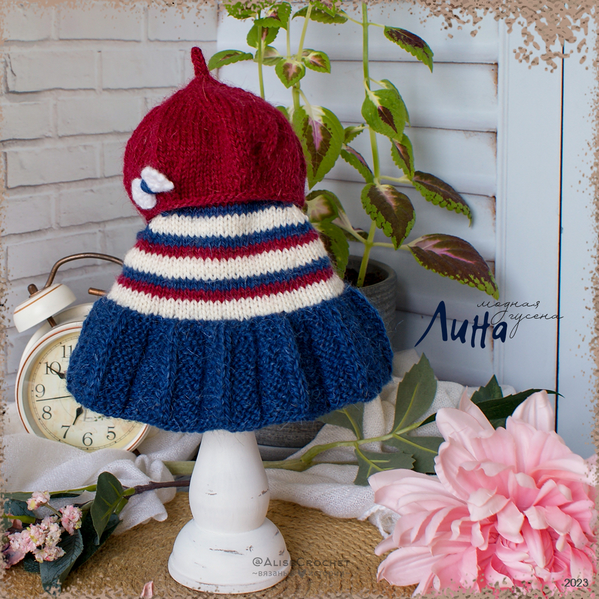 Лина, не совсем обнимательная гусена, она модняшка. Посмотрите на ее морской наряд: платьице, беретик, панталоны и шортики, ну разве она не Модница? Модница и еще какая.