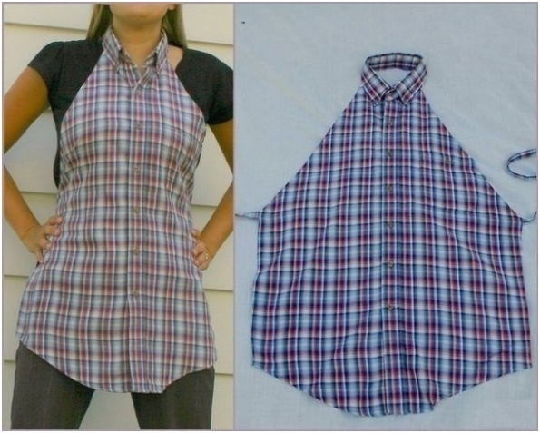 Часто из рубашек фартуки делаю:)))В доме одни мужчины! Правда воротники всегда изношены, поэтому бретели пришиваю вверху и карманы всегда оставляю.Спасибо и за такую модель.