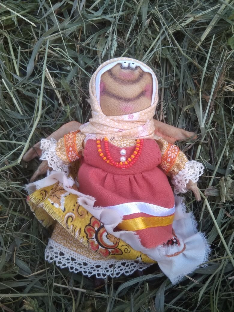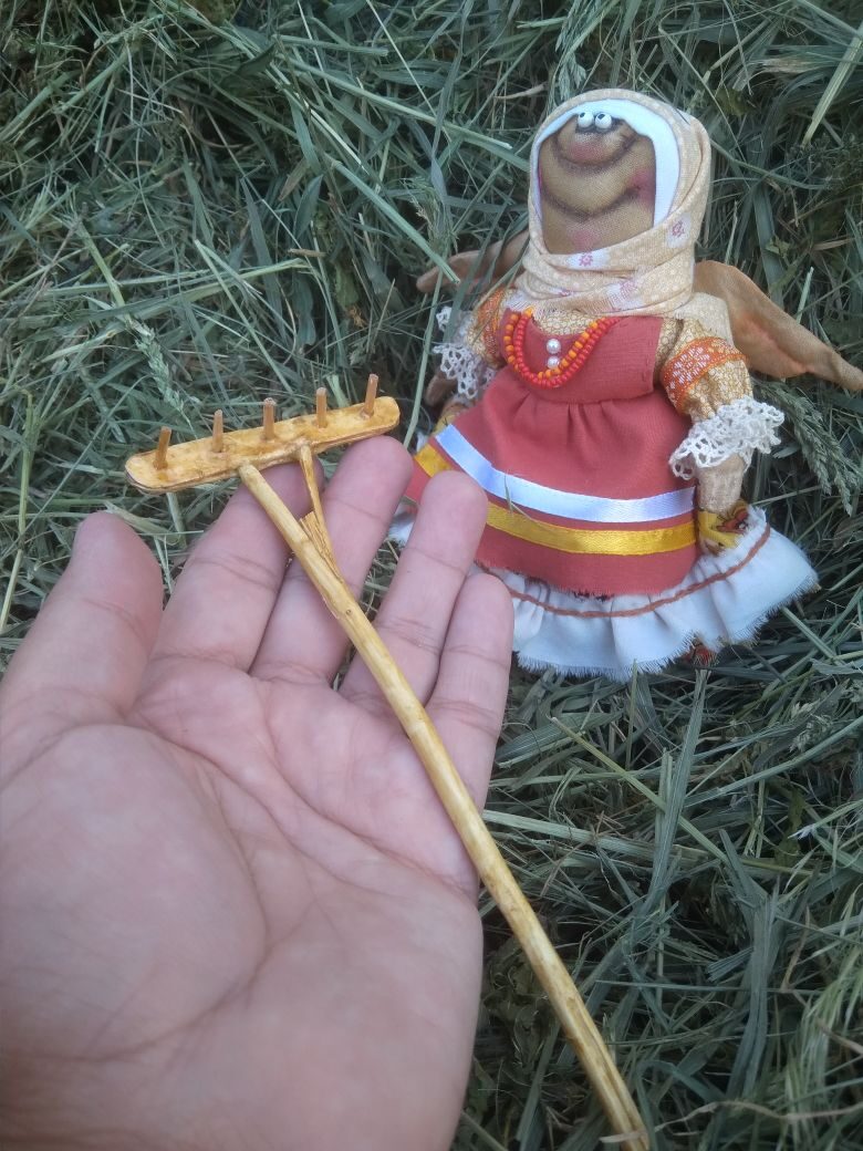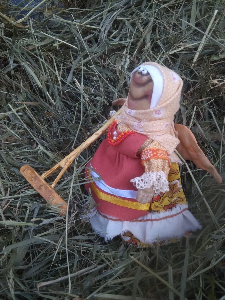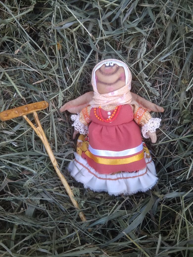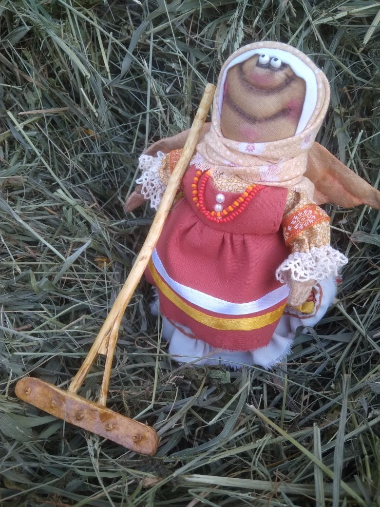 Сенокосная Баба Фея была придумана для авантюры «Дети Флоры». При голосовании в комментариях прозвучало, что Баба никак к Флоре не относится….. Это немного расстроило. Думаю, что люди, рождённые в деревне, меня поймут. Если есть Феи леса, нимфы в реках, гномы в садах и т.д., то почему на лугу в травах и цветах не «водятся» Бабы Феи? Да, не изящна. Да, не стройна. Не красива. Не легка и не воздушна. Но – работящая, крепкая, хозяйственная, заботливая и домовитая! Кто сено убирал, тот знает, как такие помощники нужны на сенокосе!